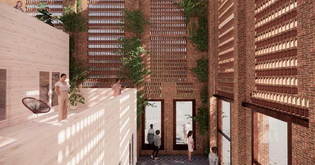 Transformación Bloque PB, P1 Nuevo acceso al Bloque + espacios compartidos y públicos + conexión en cota 107 con Collserola. Todo ello configura la Nueva plaza