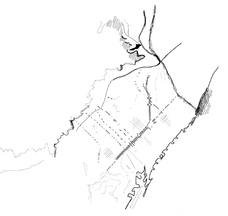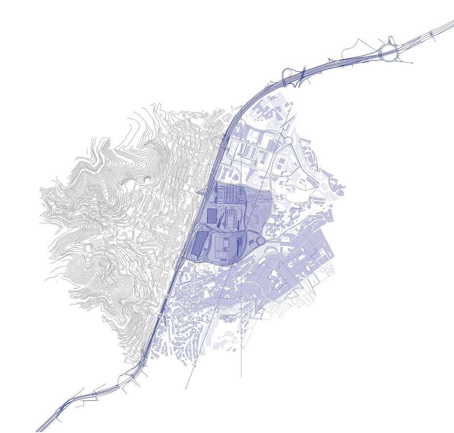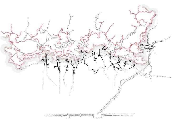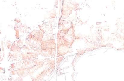 Conecta el espacio público de cota 110 con el mirador de cota 125. Aparecen piezas de uso compartido tangentes al recorrido