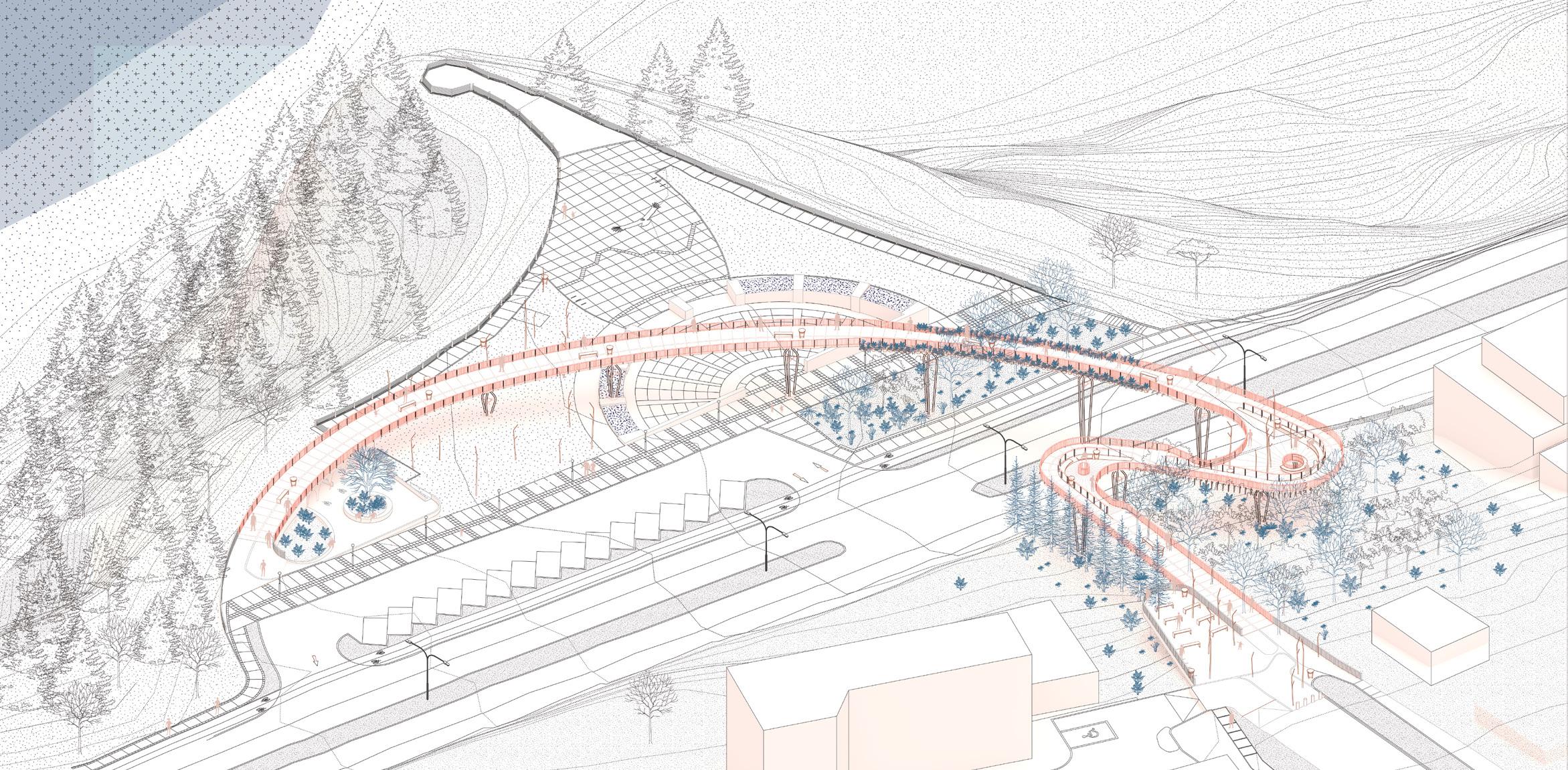 Embracing the inevitability of highways, this proposal reclaims urban spaces by concealing and integrating roadways with green infrastructure. Reactivated public spaces and local amenities reconnect divided neighborhoods, fostering equitable, long-term urban renewal in areas facing imminent concession renewals.