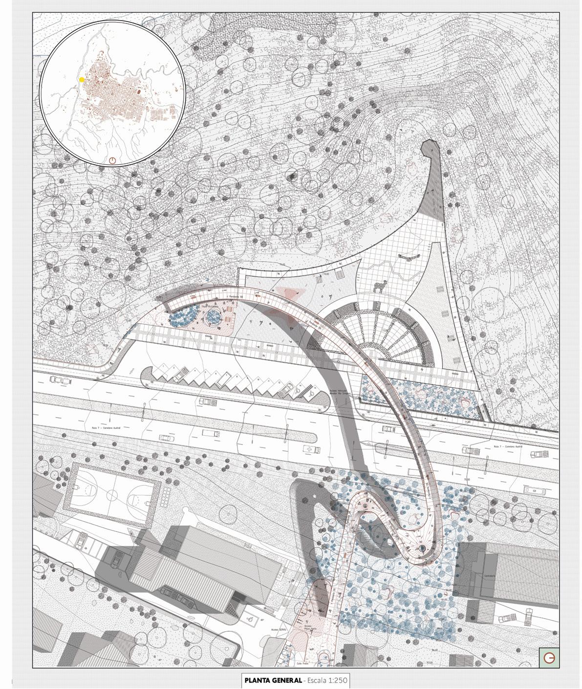 Coybre reconnects Coyhaique’s city center to its riverside cliffs via a universally accessible, gracefully curving bridge. Emphasizing simplicity and effectiveness, it fosters respectful, multi-sensory connections over commercial overload, promoting slow, enriching access to the river for both human and ecological well-being.