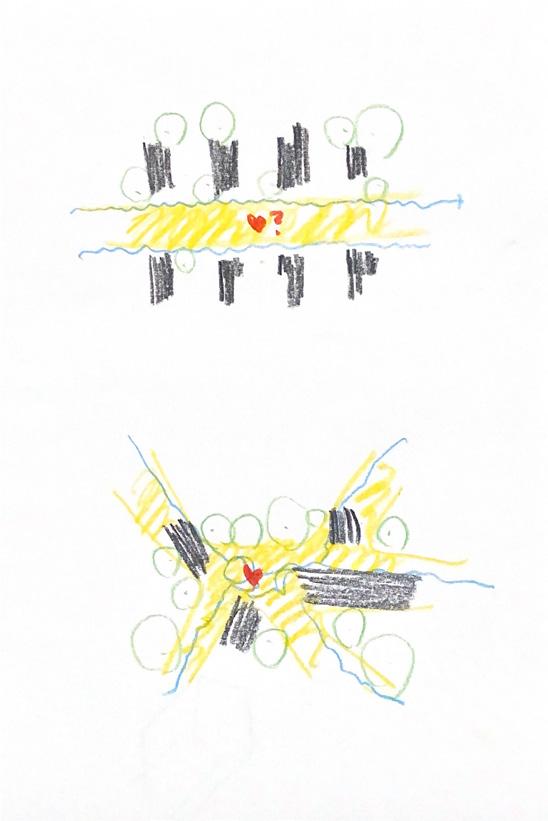 Early rendering and process. Annotations by me and Dolyagritt