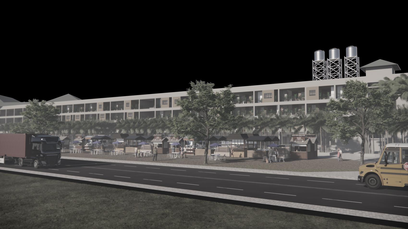 EA 25-meter front setback was applied, creating a space for bargain market stalls or road-side night market during the night to still take advantage of the economic opportunities from the road This is for the possibility of road expansion
