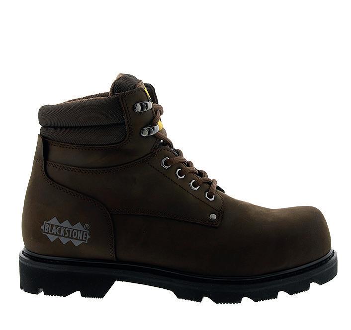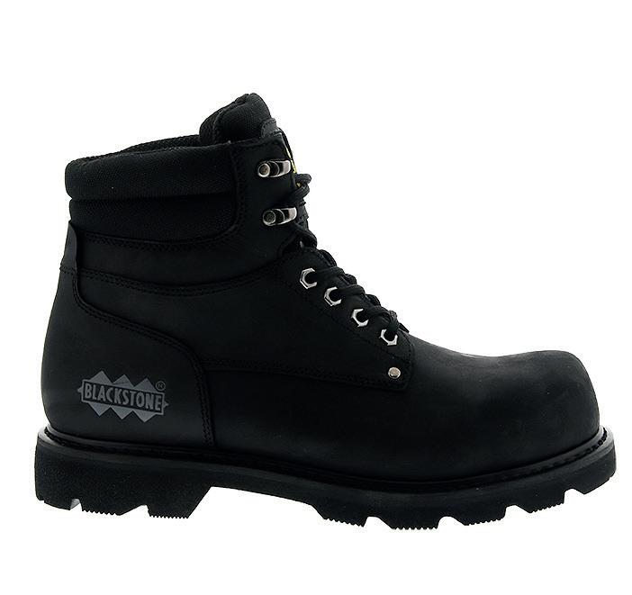 “Blackstone safety boots worden gemaakt uit volnerf rundleer en zijn volgens de Good Year welt methode geconstrueerd, de sterkste constructie in de schoenindustrie en de garantie voor een lange levensduur.