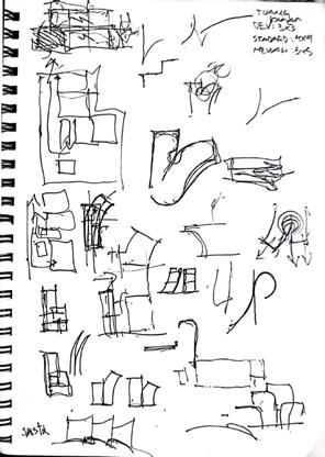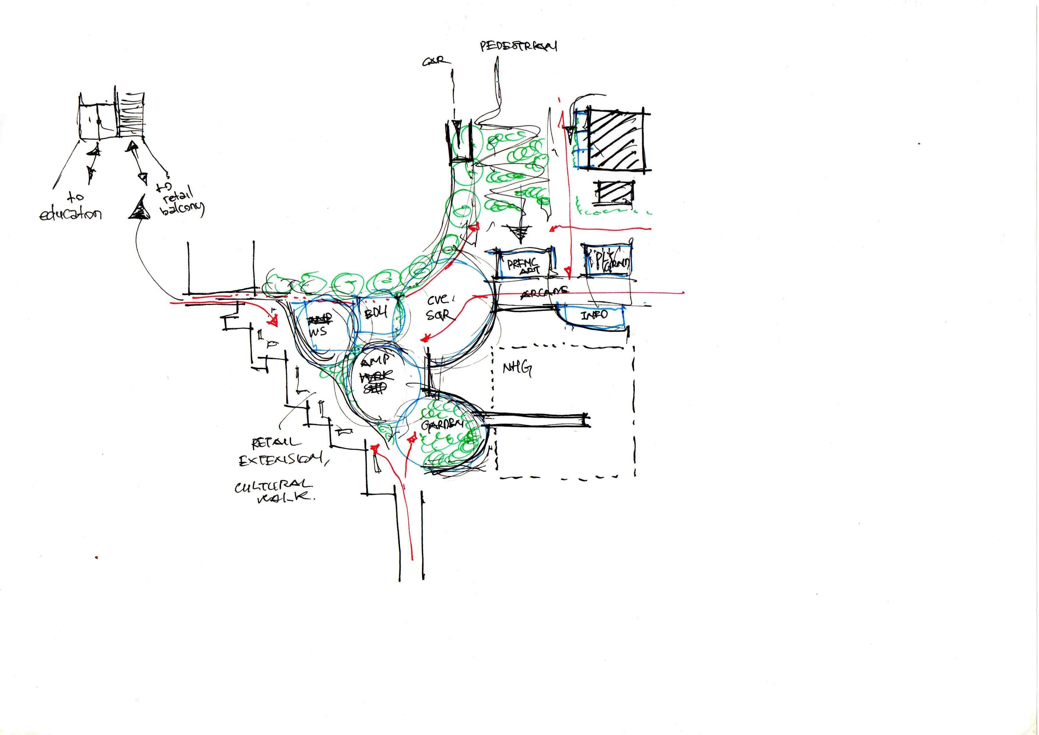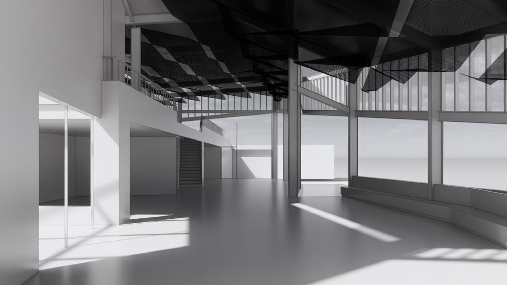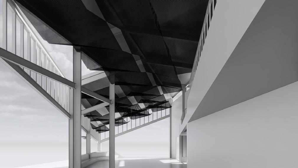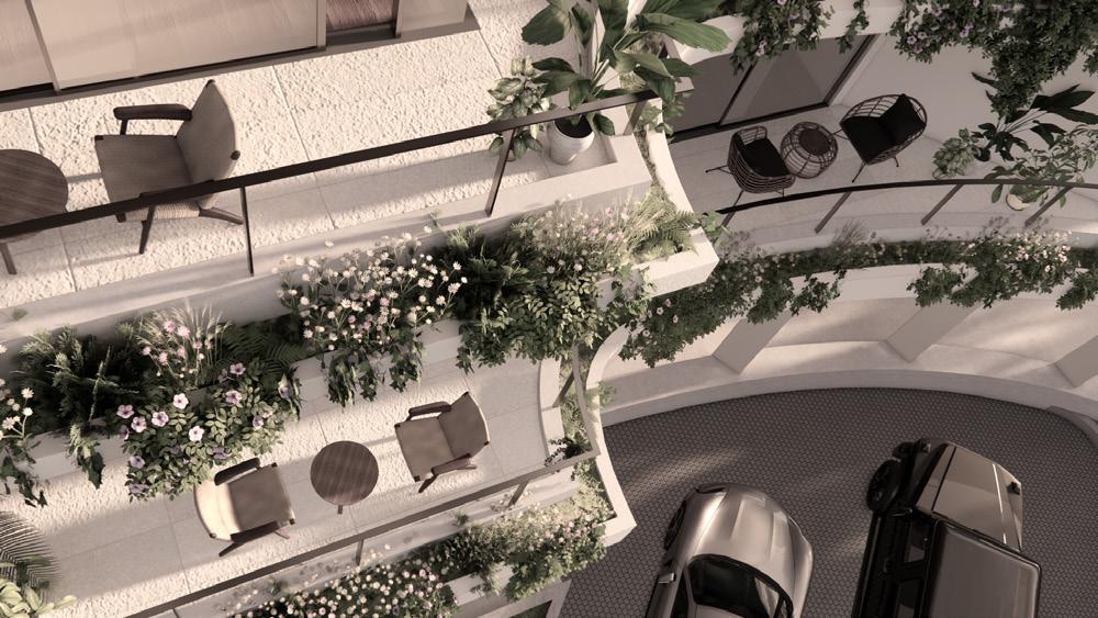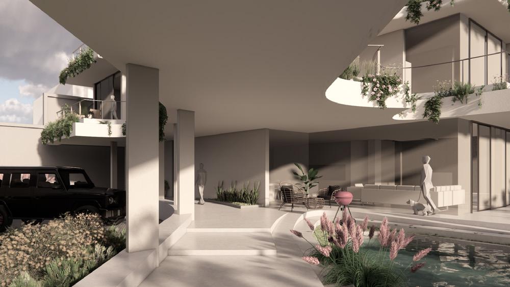 “The Shell-Membrane Wall” & “The Undulating Sky” ; as the architectural features embraces the spaces and serves as the focal point. Textured surface become a canvas for the interplay of light and color