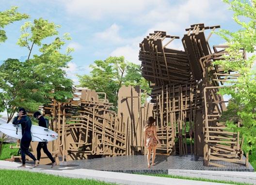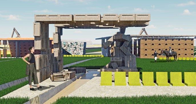 At the designated points, each pavilion is constructed using the respective deity’s preferred rooms and materials, incorporating fragments of the team leader’s selected items. The pavilion program then combines the deity’s selected typology with the host’s chosen sport.