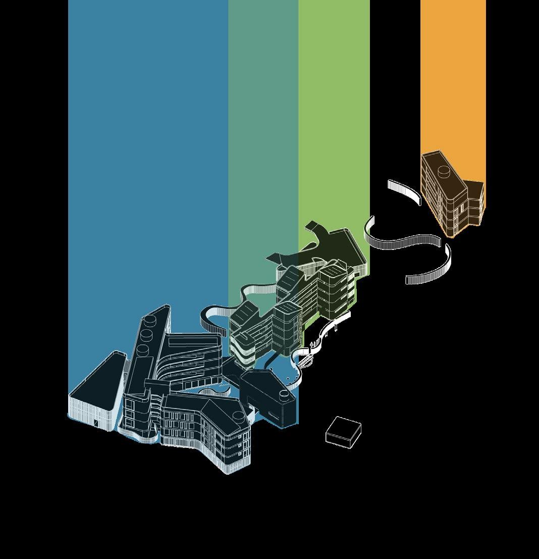 The project begins by analyzing the site to identify buildable zones in accordance with local construction regulations. It starts with three primary building masses designed to accommodate the main functions: an elementary school, a vocational school, and an additional clinic based on the program study. These initial masses are then reshaped to integrate green spaces between the buildings and softened at the edges to form the final architectural composition.