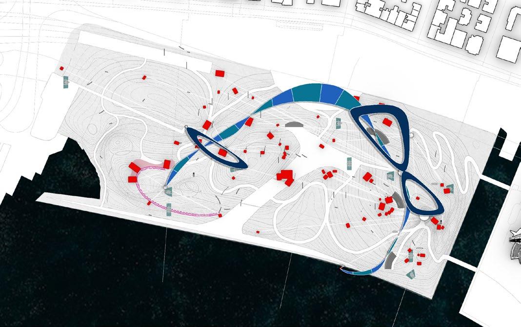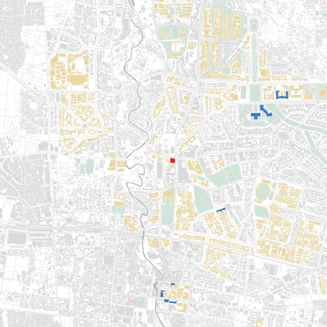 NPAK stands opposite v, adjacent to Yerevan’s Vernissage market. Behind the museum, the Firdus (Firdowsi) District has been under redevelopment since 2019. The proposal repositions the museum as an urban gateway, adding a new mass aligned to the axis to channel movement between the park, Vernissage, and the emerging district.