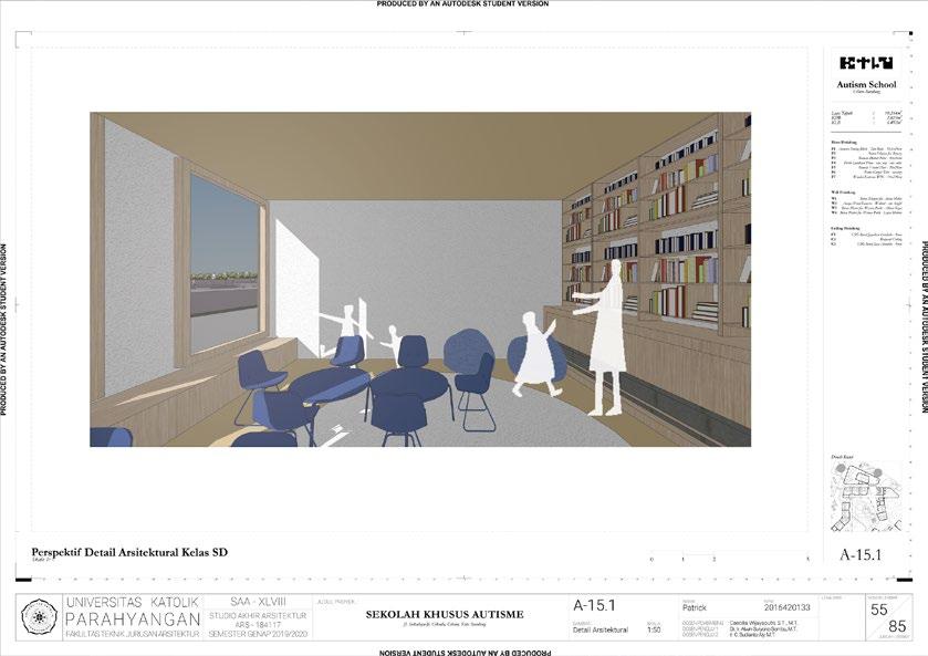 This project was proposed in response to the relatively high yet underreported number of children with autism in Bandung, Indonesia, and the limited availability of schools dedicated to their needs. Based on data and site research, the design focuses on creating an educational environment specifically tailored for children across the autism spectrum. Recognizing the diversity of cognitive and behavioral needs, the program integrates three key components: an elementary school for foundational learning, a therapy center for individual sessions, and vocational facilities for students with higher functional abilities.
