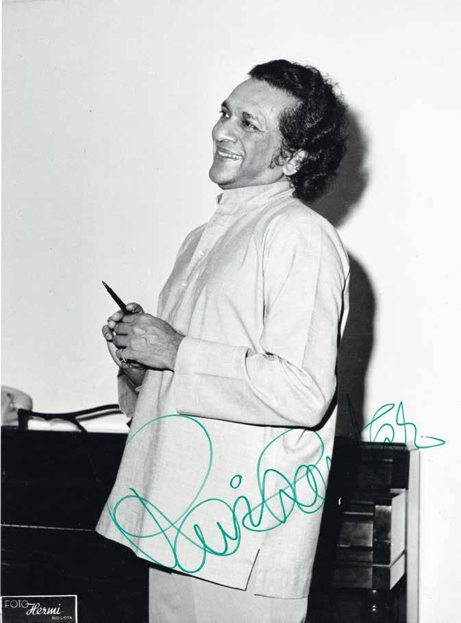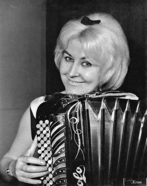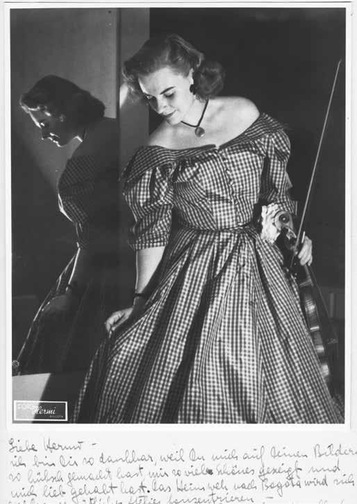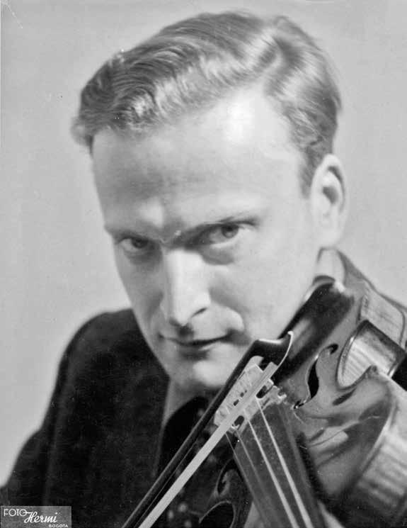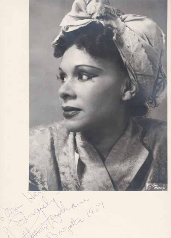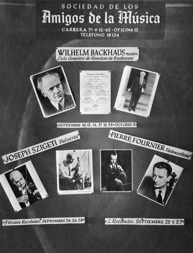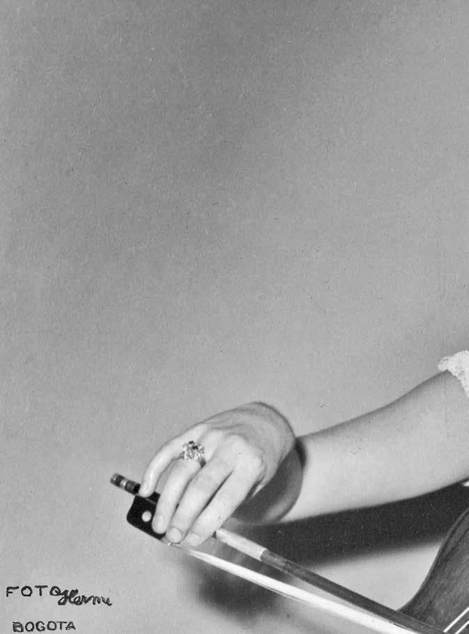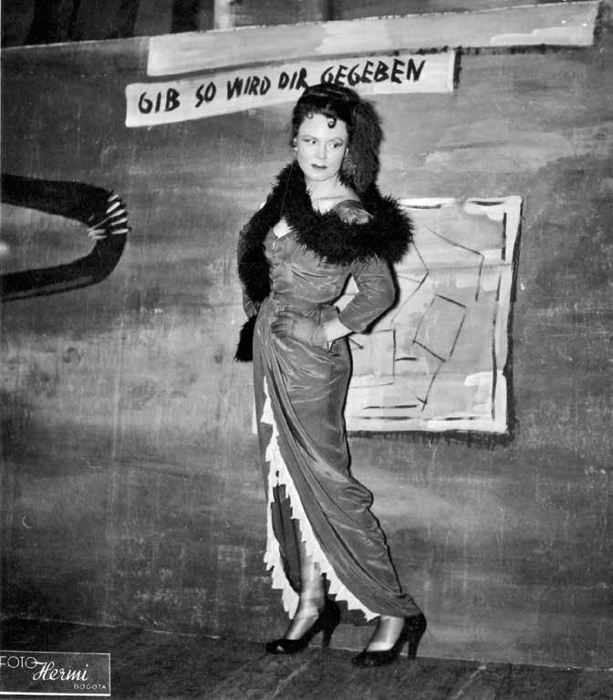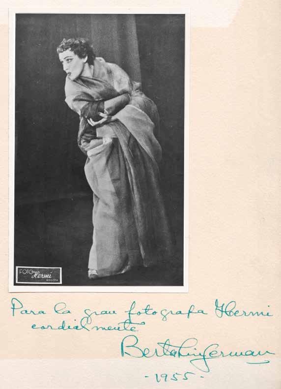 mundial o de grupos de teatro europeos, sino también de artistas provenientes de América Latina. Varios de ellos lograron acceder a los circuitos de talla internacional, en un ir y venir entre lo clásico y lo popular, como en el caso de la acordeonista francesa ganadora de un concurso de este instrumento en 1951 y que vino a Colombia en 1953 sin dejar rastro alguno, salvo la simpática foto autografiada de Hermi que se incluye aquí.
