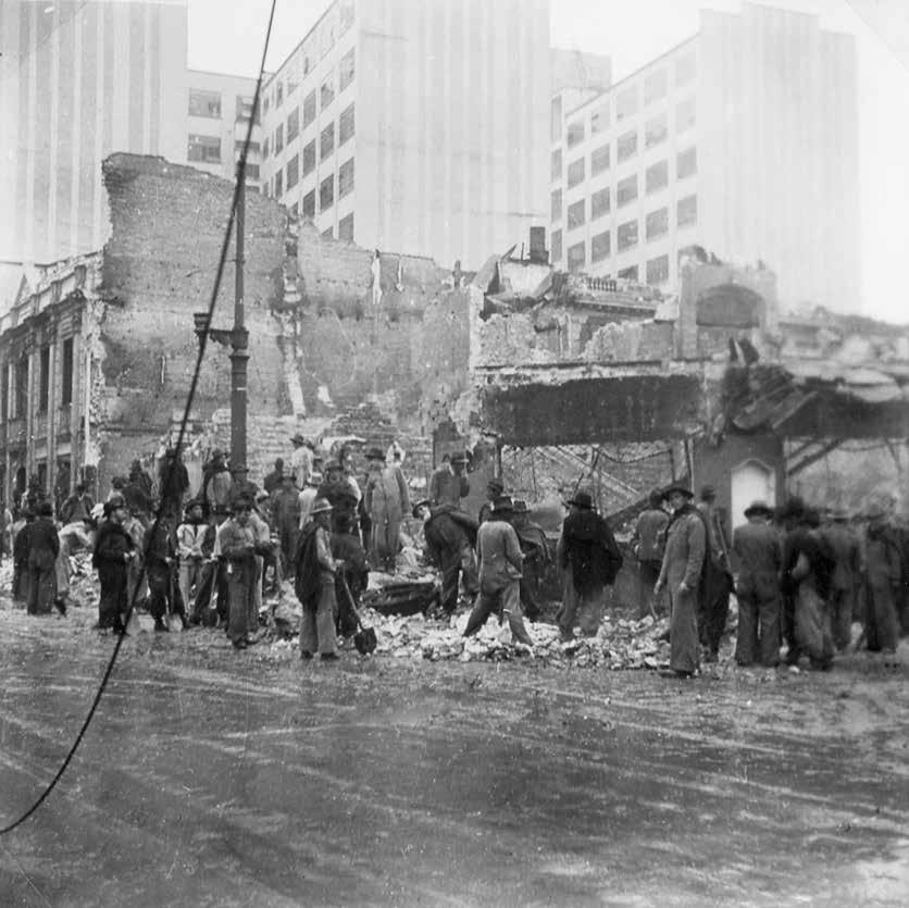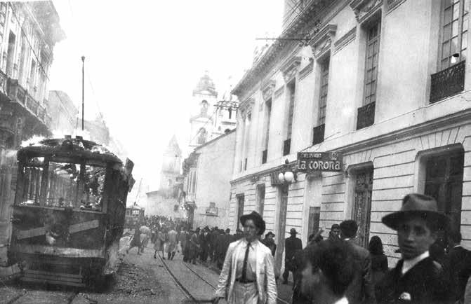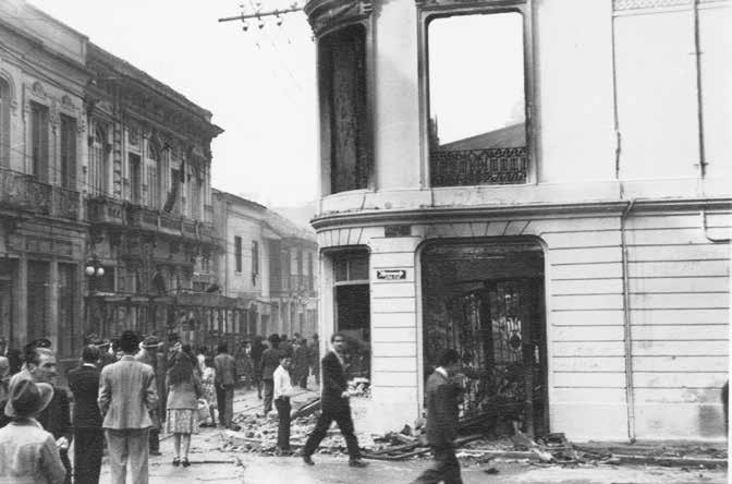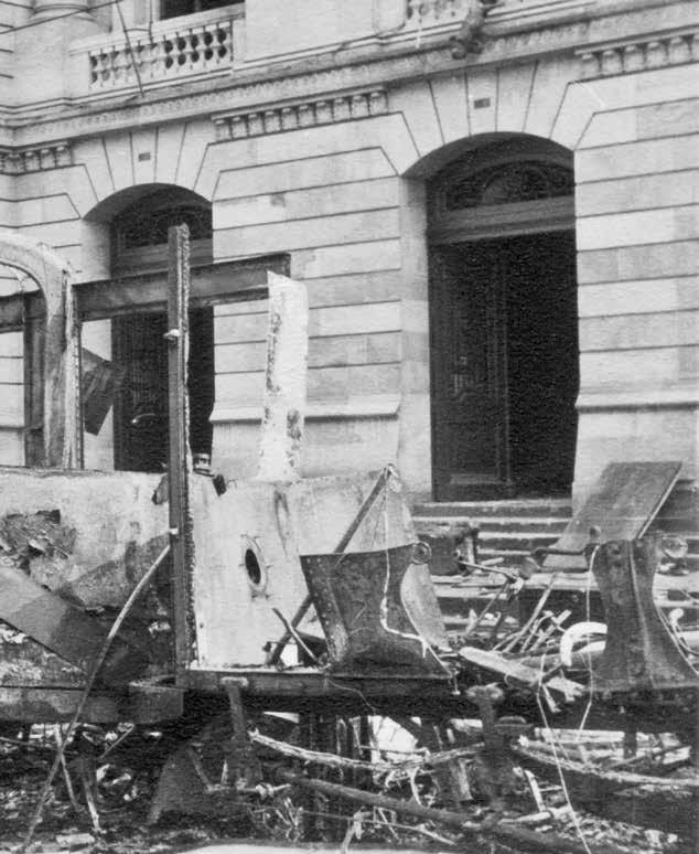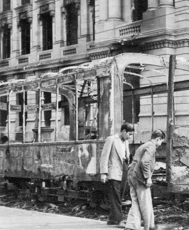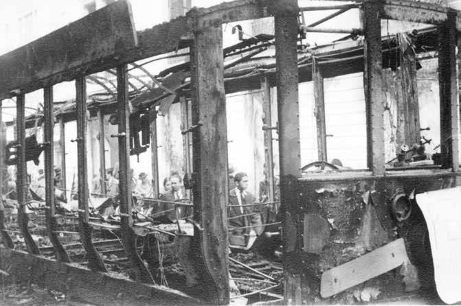 HERMI FRIEDMANN. TRANVÍA INCENDIADO Y DESTRUIDO DURANTE EL BOGOTAZO, 1948.