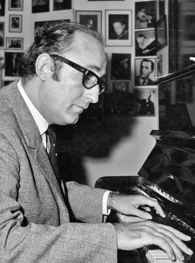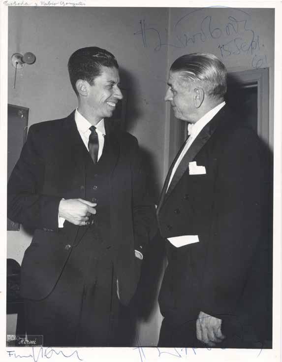 HERMI FRIEDMANN. OLAV ROOTS, DIRECTOR DE LA ORQUESTA SINFÓNICA DE COLOMBIA, CON ARTHUR RUBINSTEIN, PIANISTA, S. F.