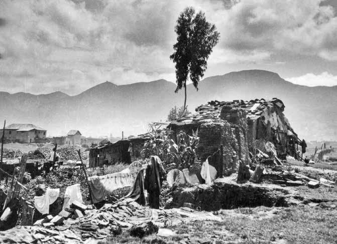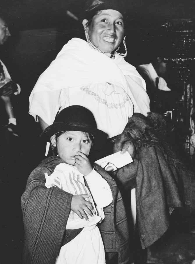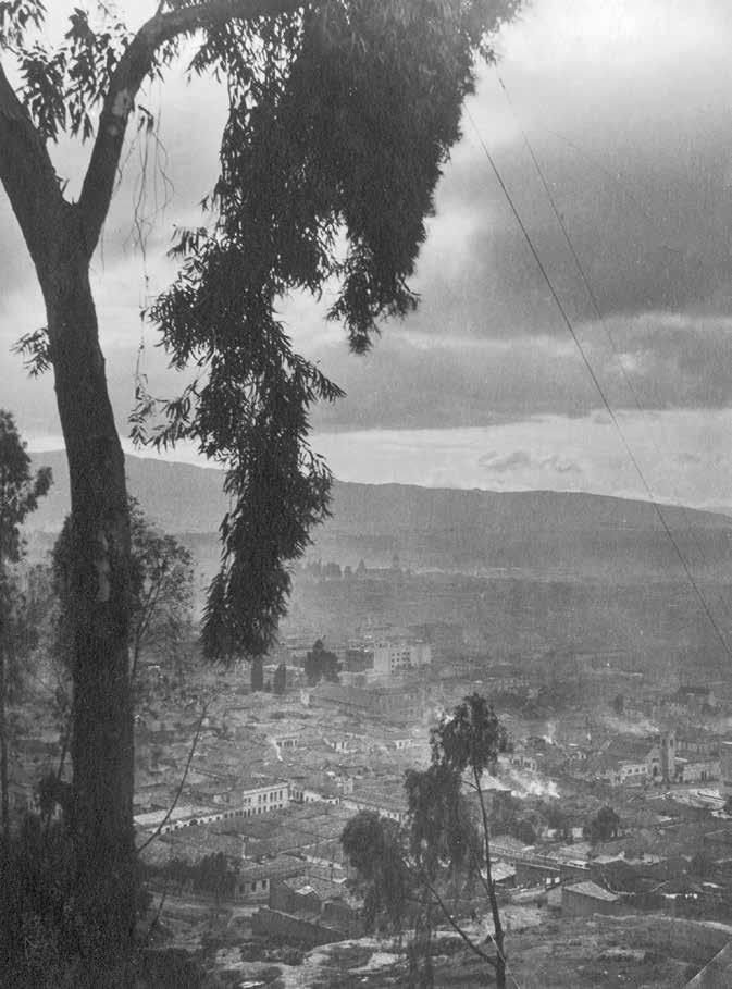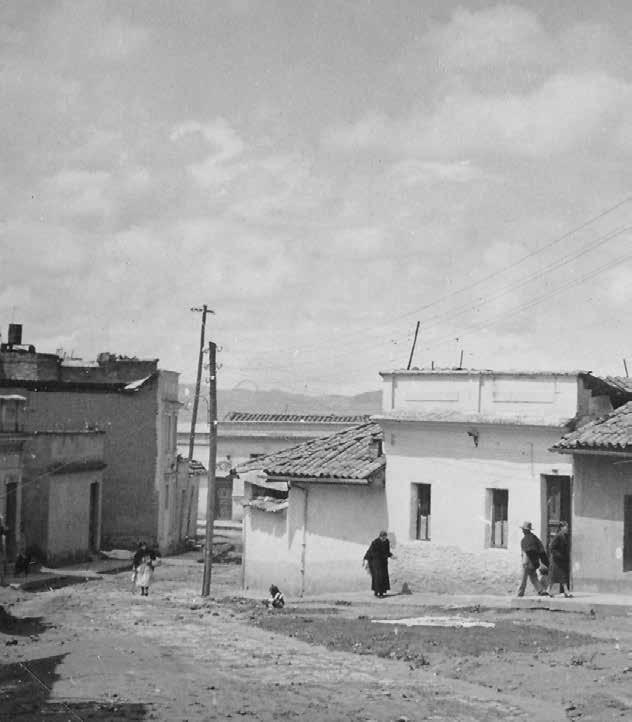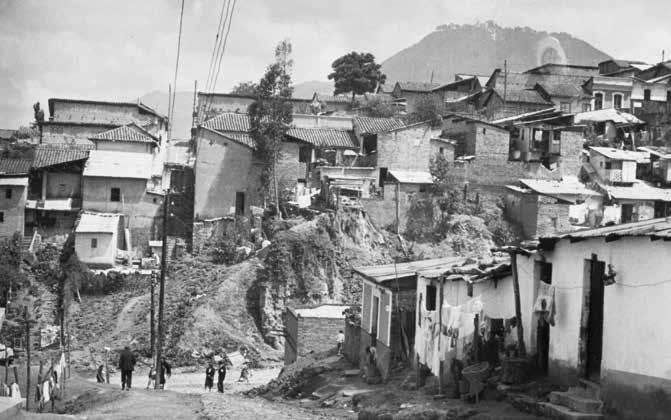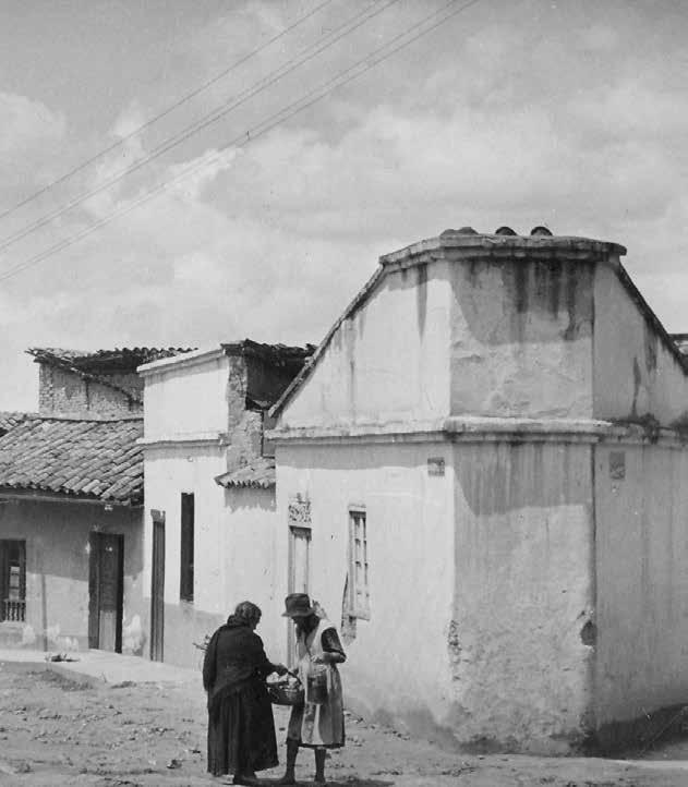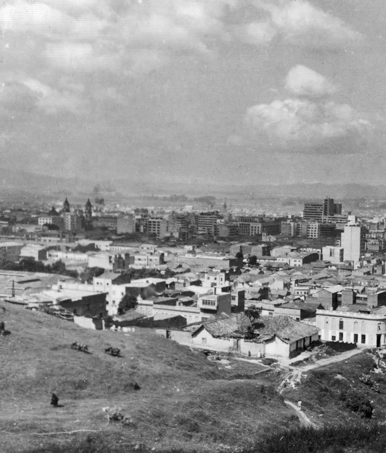 También exploró con su cámara el tránsito de la Bogotá de 1938 a 1948, como lo relata Alfredo Barón en el segundo apartado de esta publicación. Al inicio de este periodo, la capital los recibía a ella y a su familia recién llegados de Austria, lo que coincidió con la celebración del cuarto centenario de su fundación, para lo que se adelantaban varias obras dirigidas a darle la bienvenida a la “modernidad” urbana. A lo largo de esos diez años que terminaron con el Bogotazo y un centro de ciudad en proceso de demolición, Hermi logró captar tanto la Bogotá de postal, “digna de ser mostrada”, como la de la pobreza, en donde resaltan los cambuches, los niños trabajando en las calles y la ciudad-rural. De nuevo, un mundo próximo en tensión.