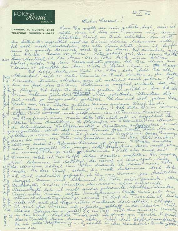 Además de las fuentes escritas y fotográficas, aún queda la tarea de transmitir lo que yo, su sobrina (y frecuentemente su cómplice al resguardar algunos de sus relatos más íntimos) pueda recordar y ordenar de alguna manera. Considero que Hermi y yo siempre tuvimos una relación supremamente cercana desde mis primeros años, pero particularmente desde 1973, cuando regresé a Colombia. En ese sentido, puedo decir que desde hace más de treinta y cinco años me he dedicado a difundir su legado.