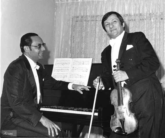 su mirada singular, como es el caso del retrato del pianista Arthur Rubinstein conversando con el director de la Orquesta Sinfónica de Colombia, Olav Roots. Hermi se distinguió como retratista debido tanto a la formación profesional que recibió en su país de origen como a la manera singular de acercarse de forma tan personal a cada uno de los artistas que retrataba.