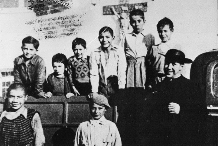 el padre alberto hurtado recoGiendo niños de la calle en su camioneta, 1945. Fundación Padre Hurtado. Colección Biblioteca Nacional de Chile, disponible en Memoria Chilena.