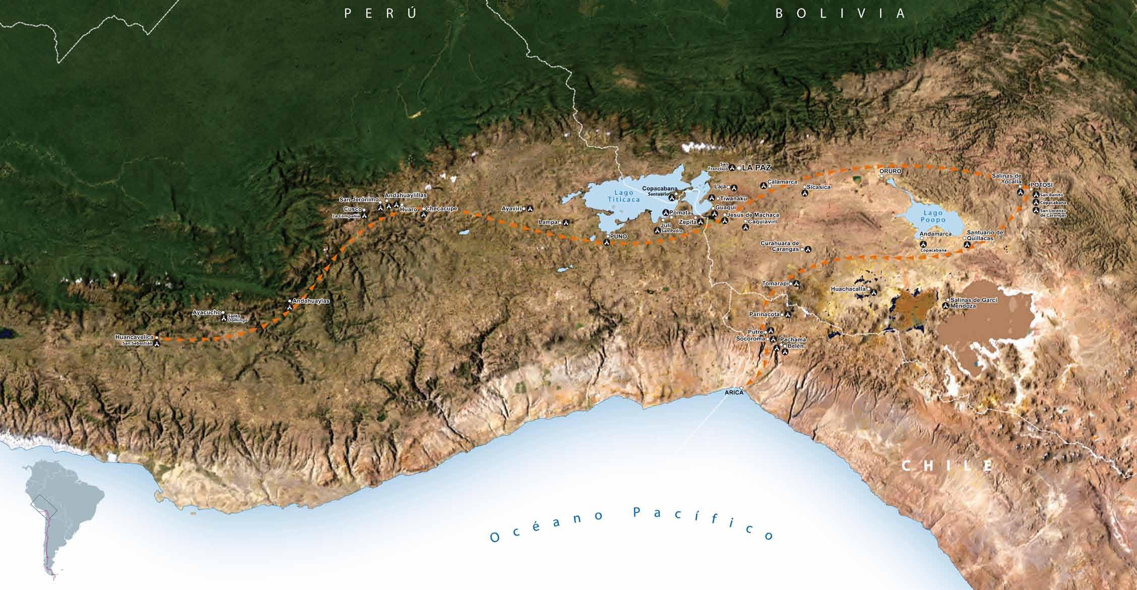 El camino recorría todo el altiplano para seguir hasta los valles de los Chúis e Incallajta, hasta las fortalezas de piedra de Samaipata y Oroncota, frente a los Chiriguanos, o hacia los valles de los Calchaquíes en el hoy norte de Argentina y los valles y desiertos del norte de Chile, por San Pedro de Atacama, Cobija y Arica.