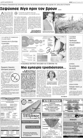 ΚΩ∆. ΕΛΤΑ 1870 Αριθ. Σήµατος: 111202: Λεωνίδας Ελ. Βαρουξής-Κων/νος Ελ. Βαρουξής Απαγορεύεται η αναδηµοσίευση , η αναπαραγωγή ολική, µερική ή περιληπτική ή κατά παράφραση ή διασκευή απόδοση του περιεχοµένου της εφηµερίδας µε οποιονδήποτε τρόπο, µηχανικά, ηλεκτρονικά, φωτοτυπικά, ηχογραφήσεως ή άλλον, χωρίς προηγούµενη γραπτή άδεια του εκδότη Νόµοι 238/1970, 4301/1979, Ν. 100/1975, Ν.∆3585/1956 και 4254/1962 και κανόνες του ∆ιεθνούς ∆ικαίου.