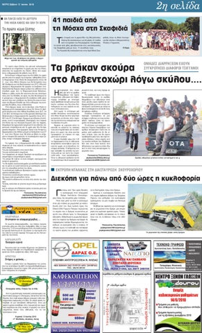 µπροστά τους και τους έτρεψε σε φυγή. Το πρόβληµα όµως που έχουν δηµιουργήσει αυτές οι οµάδες διαρρήξεων των αθιγγάνων είναι πολύ µεγάλο αφού σχεδόν σε καθηµερινή βάση χτυπούν σπίτια, καταστήµατα, αυτοκίνητα µε στόχο να βρουν αντικείµενα τα οποία θα τους αποφέρουν κέρδος. Συνήθως επιλέγουν απόµερες περιοχές προκειµένου να µην υπάρχει ο κίνδυνος να τους αντιληφθούν αµέσως ώστε να έχουν χρόνο να αποµακρυνθούν. Οι κάτοικοι των περιοχών που πέφτουν θύµατα διαρρήξεων των οµάδων αποφεύγουν πλέον και να µιλάνε γιατί φοβούνται ότι θα γίνουν στόχος τους και θα έχουν προβλήµατα µαζί τους. ∆εν έχει περάσει εξάλλου πολύς καιρός από την αναίτια επίθεση που δέχθηκαν δύο νέοι στον Άγιο Ιωάννη από αθίγγανους των ώρα που ήσαν έξω από το σπίτι τους και έφτιαχναν το µηχανάκι τους. Παναγιώτης Παυλόπουλος paylopoulos2004@yahoo.gr paylopoulos2009@gmail.com