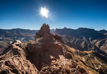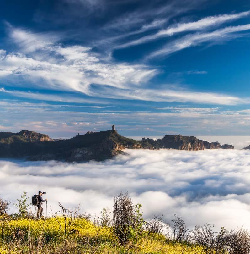 «miniature continent». Pico de los Pozos de Las Nieves, in the centre of the island, is its highest peak, standing at 1.949 m. From its summit, with the Roque Nublo as the island’s symbol, down to the coast, its geography is radially furrowed by deep ravines that contain landscapes of strong and amazingly beautiful contrasts.