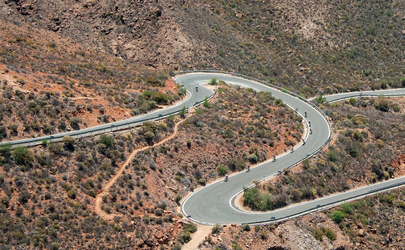 Tras un breve y rápido descenso, llegaremos al cruce de la Presa de las Niñas, donde giraremos a la izquierda para bajar por la GC-605 hacia Mogán . Aquí disfrutaremos de uno de los paisajes ciclistas más conocidos de los últimos años: el famoso “Little Stelvio”, bautizado así por su gran parecido con el mítico puerto italiano.