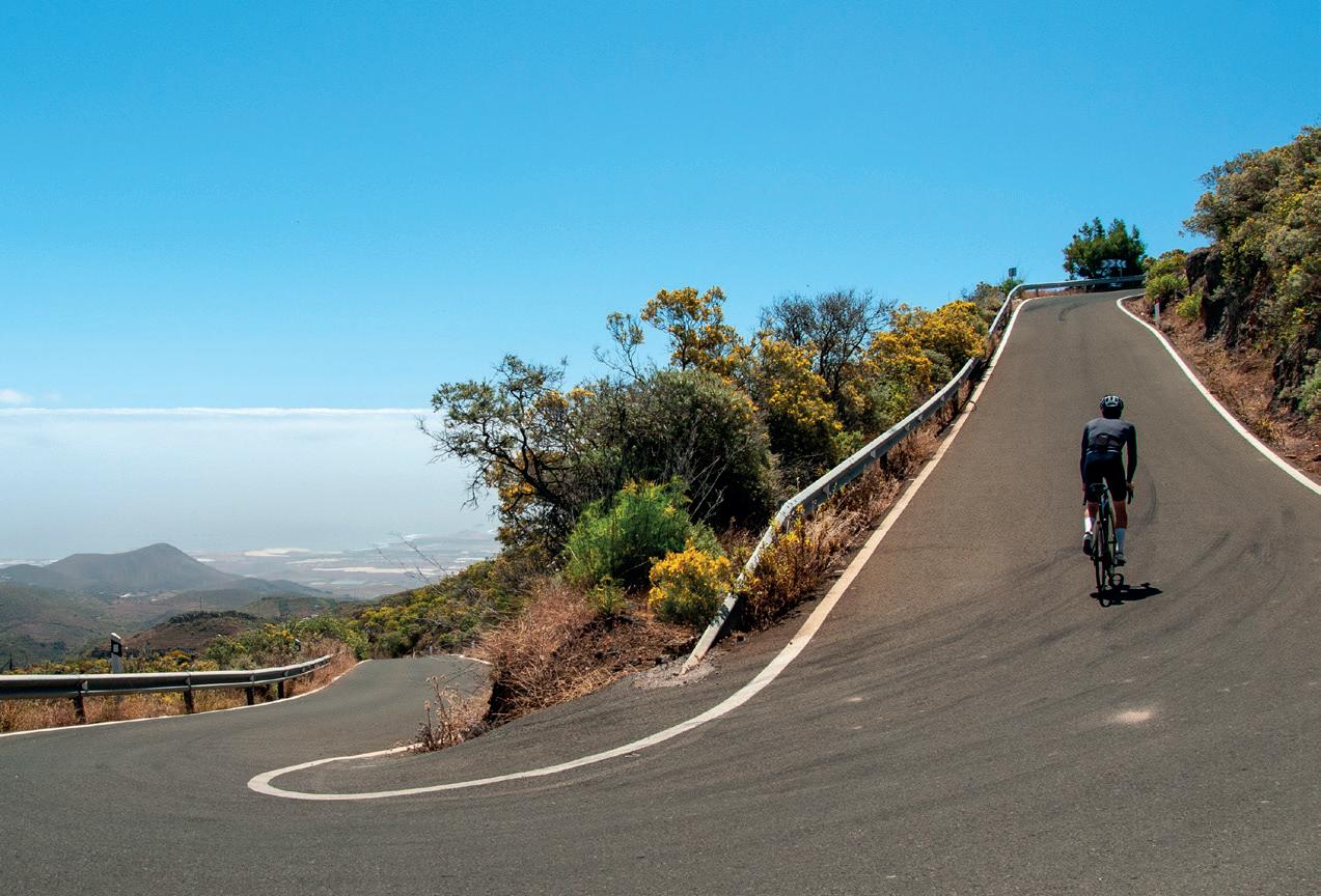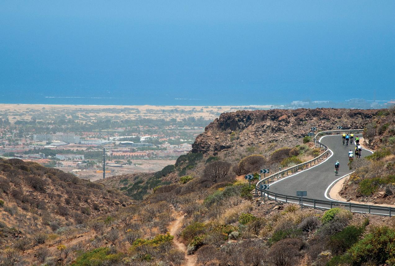 Sus carreteras, tranquilas y poco transitadas, se adhieren al paisaje como líneas de tinta sobre un lienzo en movimiento. Los más de 229 kilómetros que surcan la isla, combinados con una temperatura media de 24 °C durante todo el año, han convertido a Gran Canaria en un punto de encuentro para ciclistas profesionales y aficionados que buscan entrenar, reconectar o simplemente disfrutar de su deporte favorito combinado con una oferta turística de la más alta calidad.