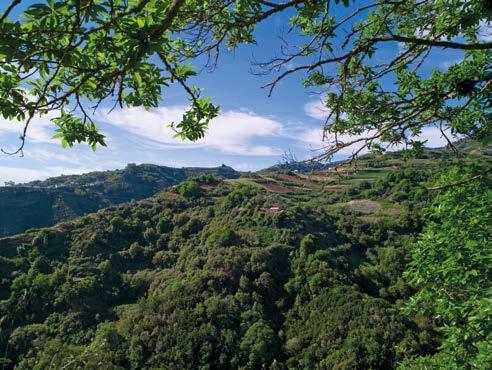 Laurel tree forests are lush and mysterious. The trees are evergreens and it rains almost throughout the year, although this rain, instead of falling from the sky, actually falls as droplets from the trees themselves due to so-called horizontal precipitation. The wide leaves on the trees are able to filter the moisture in the clouds and tradewinds and transform them into tiny droplets that fall to the ground. George Glass (1784), on Montaña de Doramas.