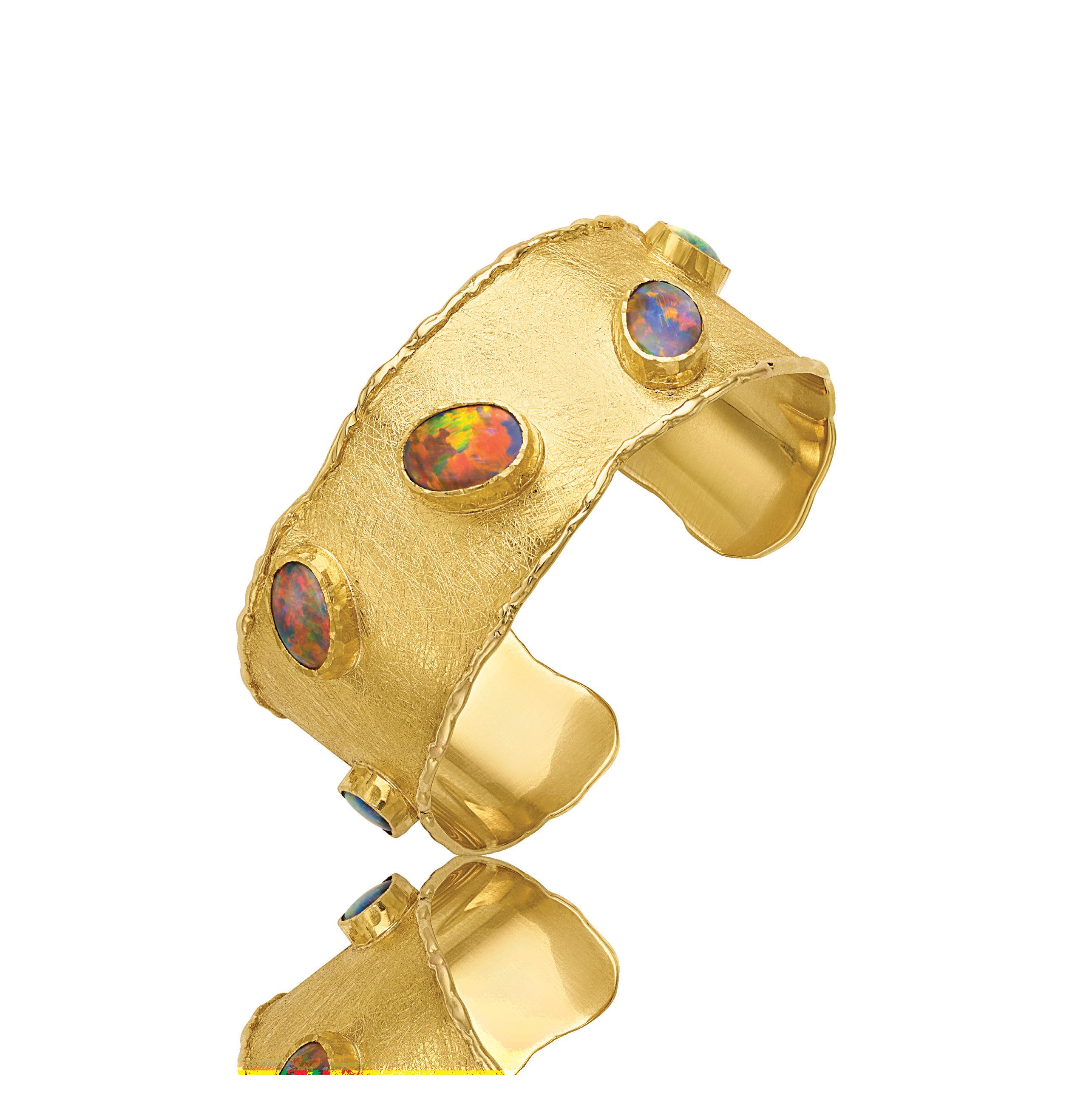 Gold textured asymmetrical gown, Gracity by Geoffrey Henning, Carefully Created Luxury; Nan Fusco Australian opal and diamond pendant, Diamond Wings necklace, green tourmaline and 14k gold necklace, Tahitian pearl halo ring, graduated diamond bracelet, pave diamond ID bracelet and emerald eternity bracelet, all Nan Fusco at Carefully Curated Luxury; vivid and textural Green Fascination Brazilian quartzite, through Texas Counter Fitters, Richardson.