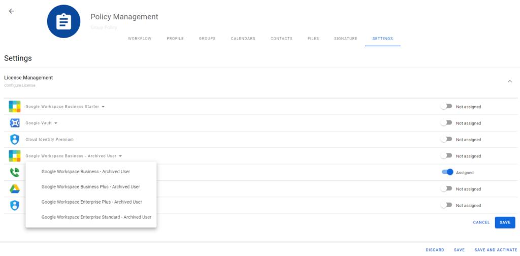 Today we’ve added a much-requested feature to Patronum, License Management Using Patronum, Google Workspace administrators can now ARCHIVE and apply a specific archive user license to a user as part of an offboarding process. Simply create your Patronum policy select SETTINGS > License Management from here you can select which archive user license you want to apply to your deprovisioning policy When the policy is triggered users will automatically be flagged asARCHIVED and a new license applied