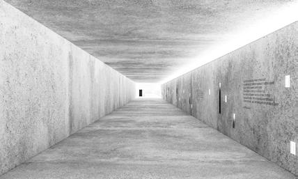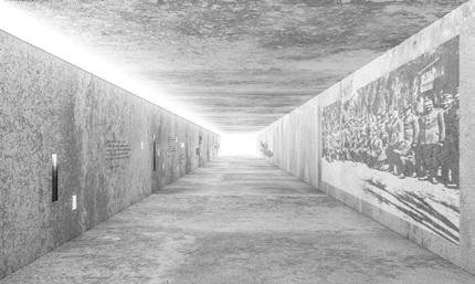ścieżki oraz projektowane budynki zawierające symbole, takie jak granica, światło, pustka, cisza i czas, adekwatne do charakterystyki tego miejsca.