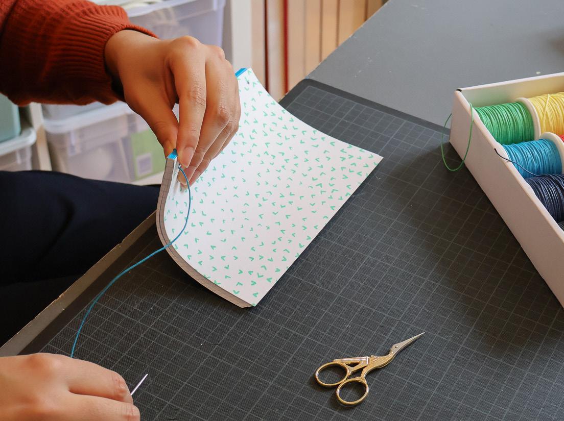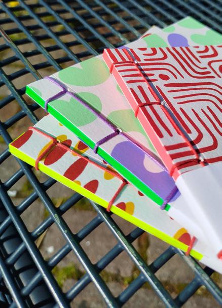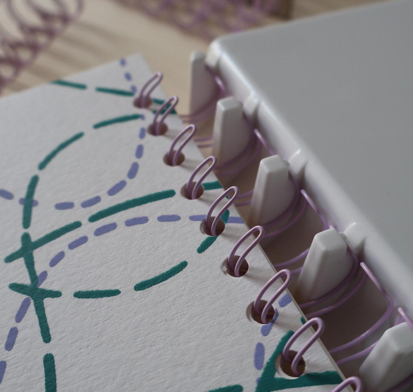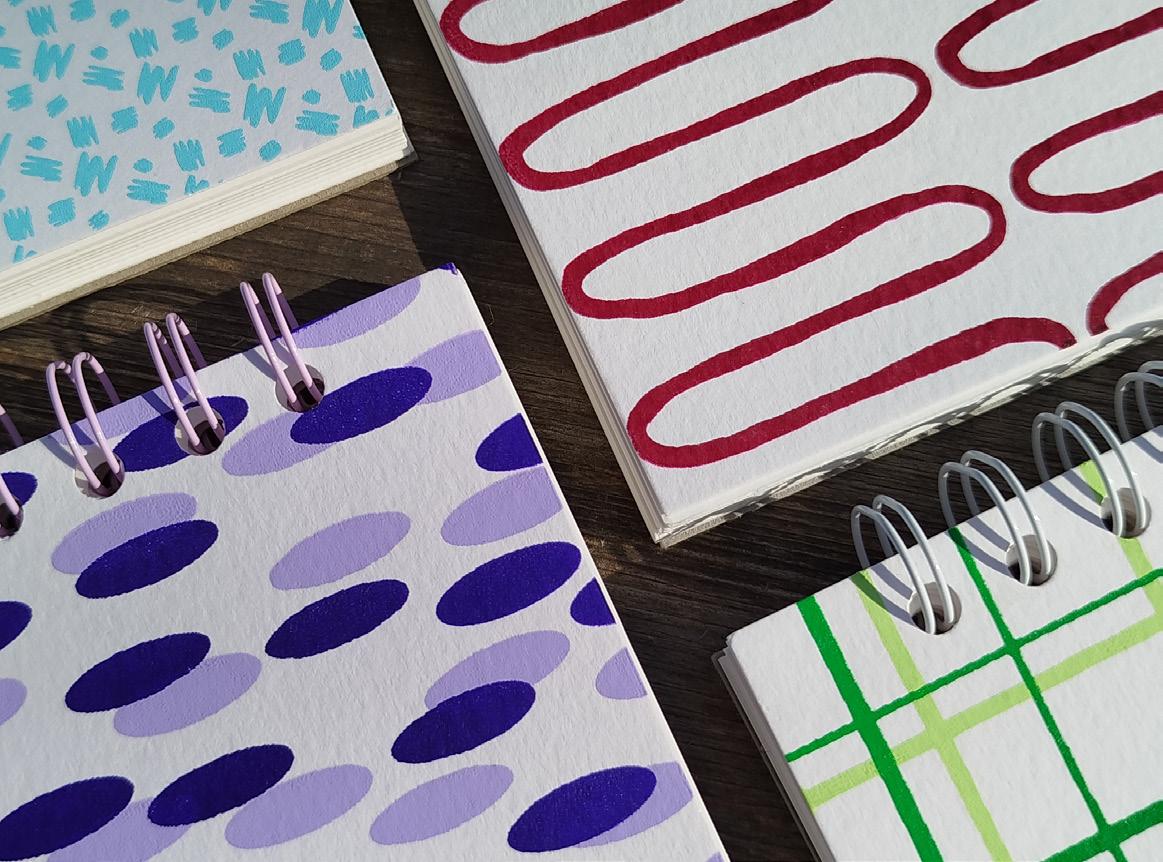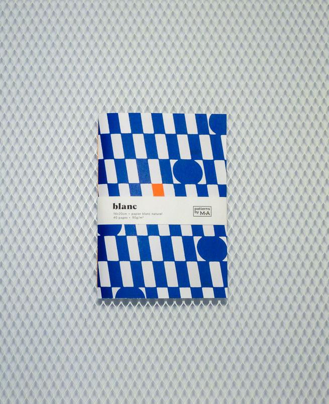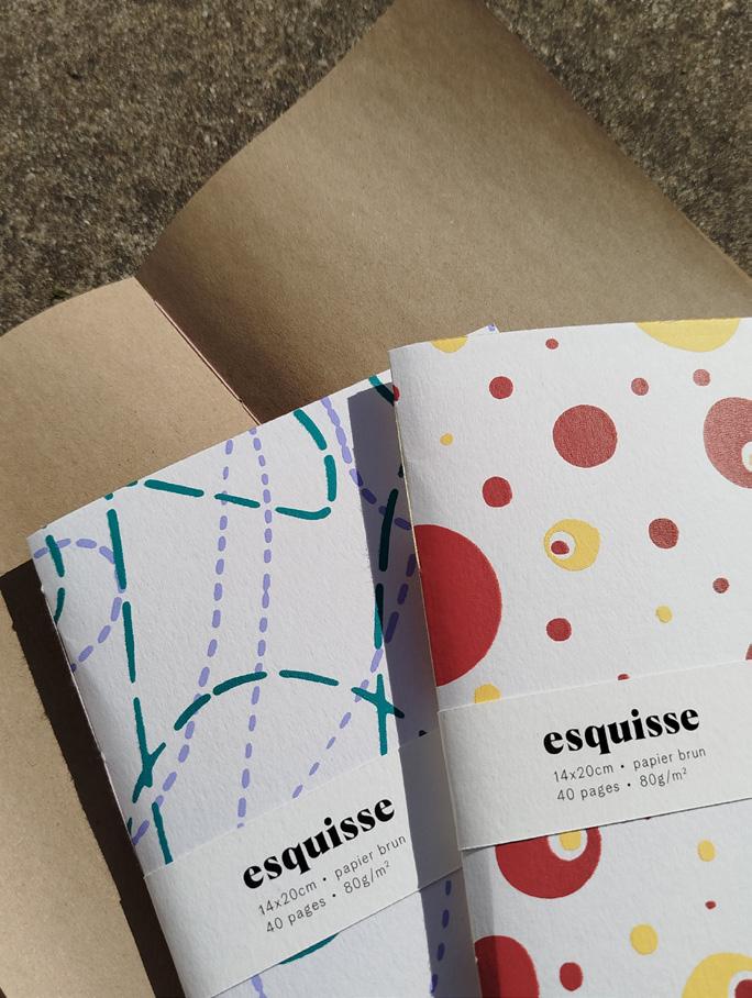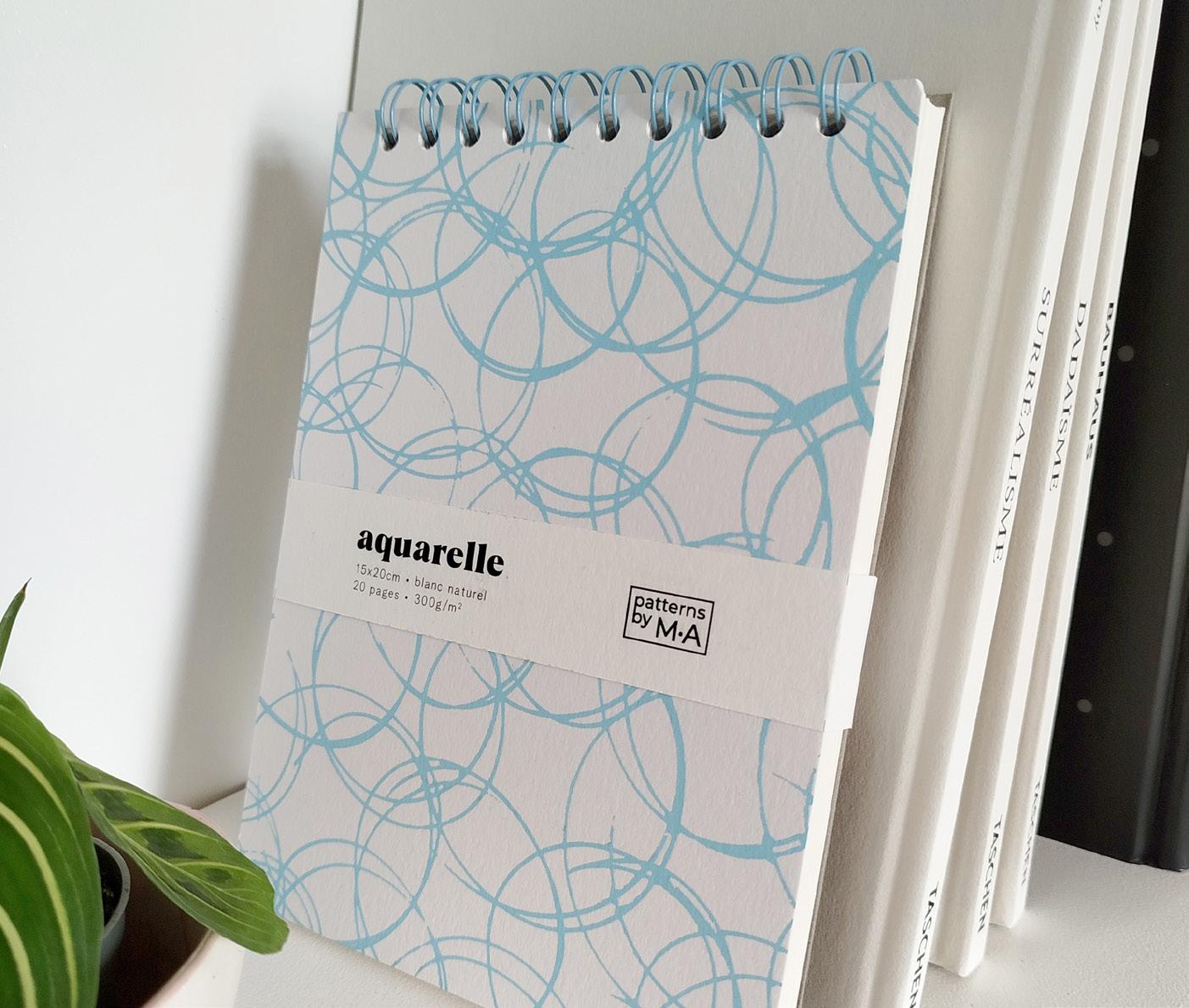 Mes patterns sont tous dessinés à la main, repris numériquement puis sérigraphiés dans mon atelier. Le travail de reliure est également fait à la main par mes soins.