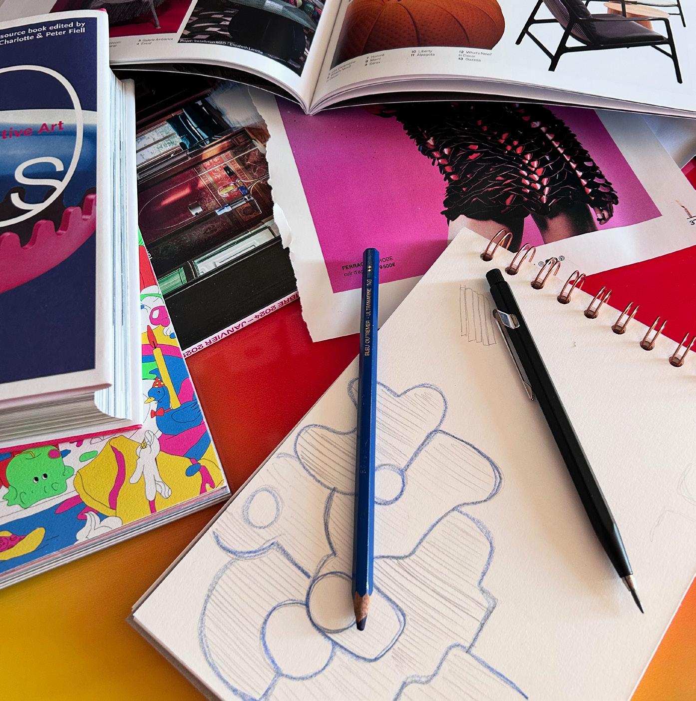 Les motifs que je décline sont inspirés de ce que je peux observer dans ma vie quotidienne que ce soient un détail d’architecture, la couleur d’une voiture qui passe, l’assortiment des épices du marché, la texture d’un légume que je cuisine…Tout est source d’inspiration.