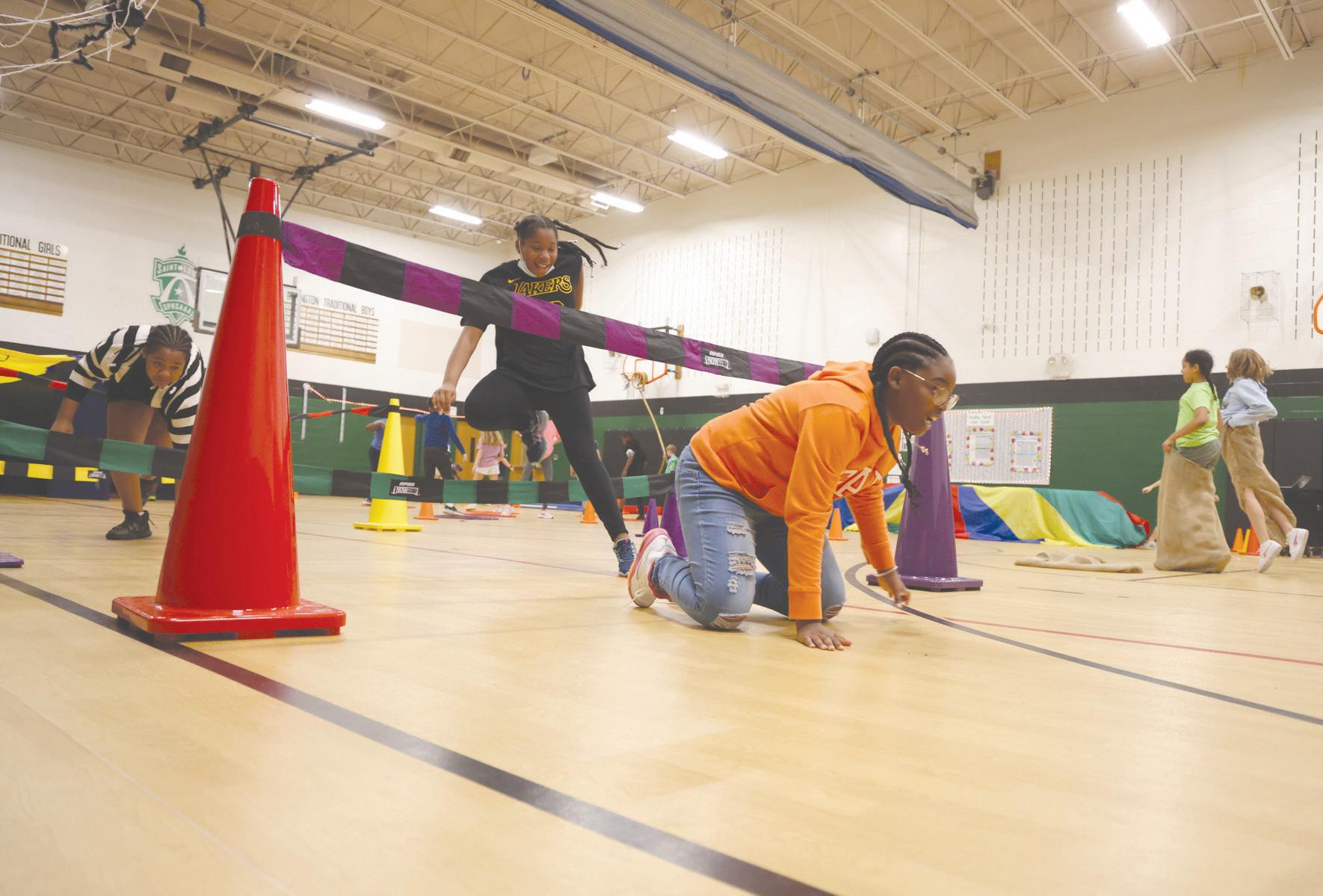On a dreary October day, students walked into the Remington Traditional School gym and weaved their way through a haunted house, faced the challenges of the frightening cave, traversed the spider pit and had to walk like zombies. It was all part of a large obstacle course set up with a Halloween theme for all of the school’s PE classes.