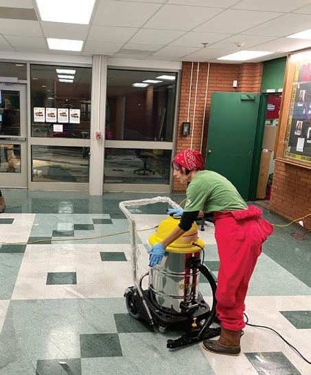 Pattonville High School custodial supervisor Eva Whitfield mops the floor on Dec. 24 after pipes burst at the school.