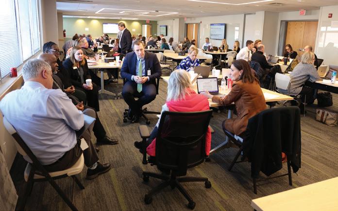 Pattonville School District administrators, along with representatives from across the state, discuss personalized learning during a System Design Zone meeting in Pattonville.