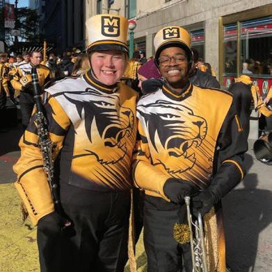 The Mizzou marching band led the 96th Macy’s Thanksgiving Day parade. Four of the performers are Pattonville graduates. They are, from left, Abby Twyman, Lay Dukes, Trevor Vigus and Kesley Kobielusz.