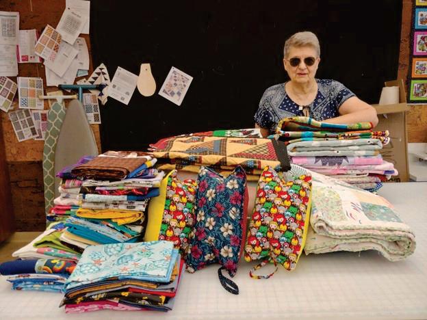 Sondra Harrington proudly displays the items donated to military families.