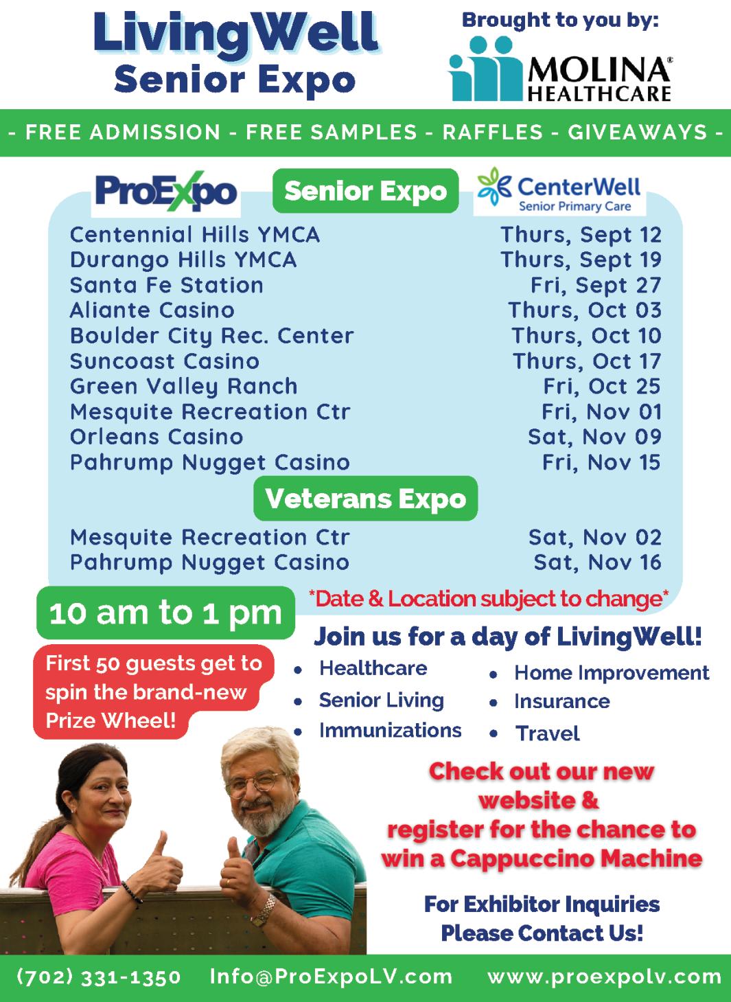 FREE MEMORY SCREENINGS & A NONPROFIT SENIOR EXPO, Thursday, September 26 from 9 a.m.- noon You will be able to have a FREE memory screening and visit more than 15 nonprofit local organizations that offer a wide variety of services – all available FREE of charge to your family The event is hosted by the Cleveland Clinic Lou Ruvo Center for Brain Health, Alzheimer's Association, Nevada Senior Services, and the Dementia Friendly Clark County