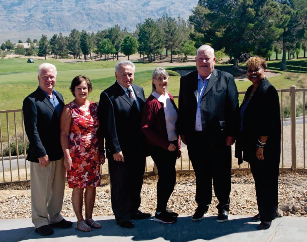 The members of the 2024-2025 Sun City Aliante Board of Directors pictured (l-r) are Mark Benz; Director; Kathy Martin, Director; Mark Towers, Secretary; Nancy Prince, Vice President; Ed Sloman, President; Sonja Bankston-Cullen, Treasurer