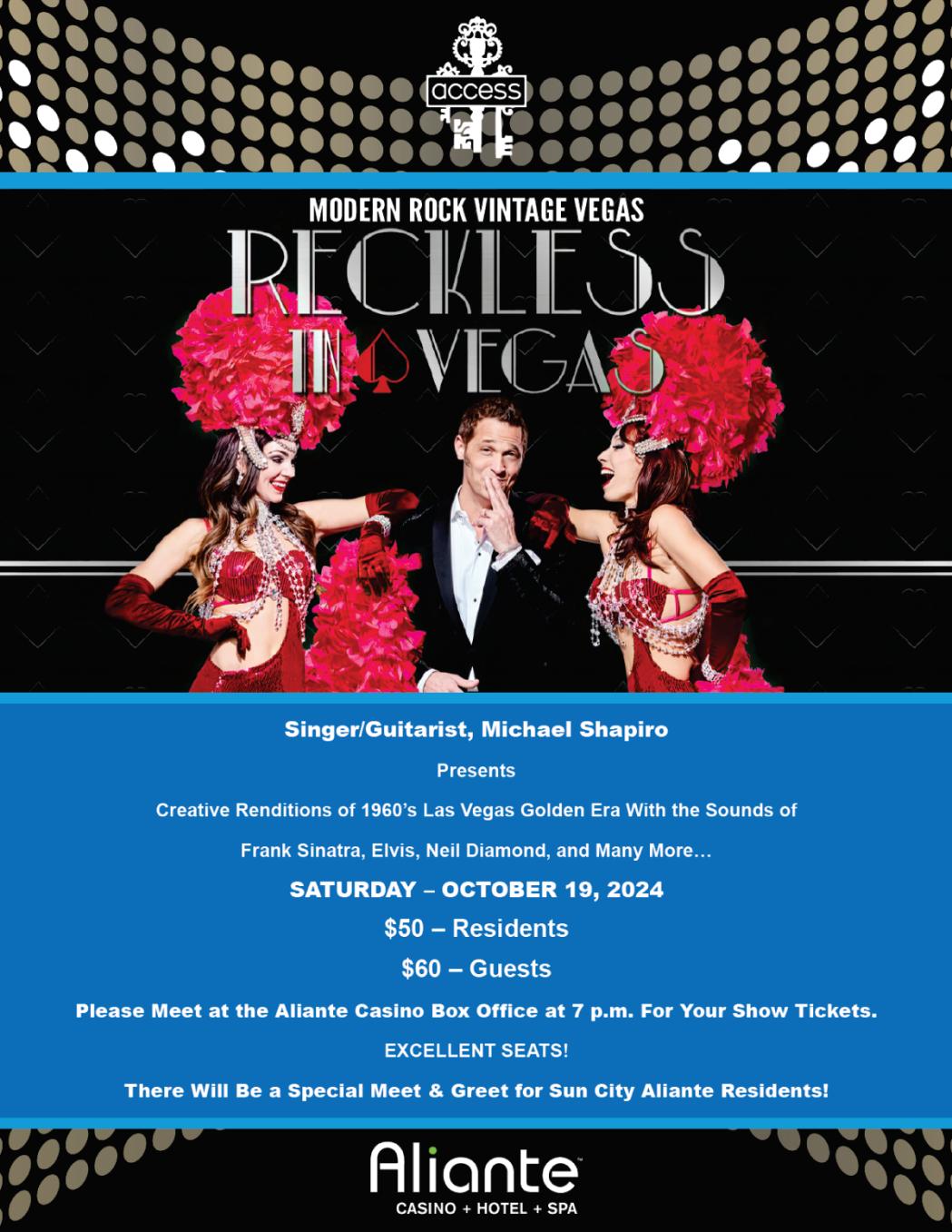 RECKLESS IN VEGAS – STARRING SINGER/GUITARIST MICHAEL SHAPIRO –ACCESS SHOWROOM, ALIANTE CASINO -