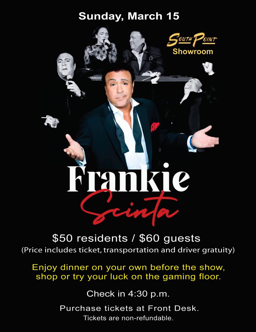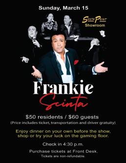 Known for his dynamic stage presence and a blend of music, comedy, and storytelling, Frankie promises an unforgettable evening of entertainment.