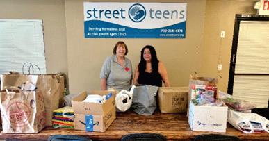 Street Teens is shown accepting donations received during from the School Supply Drive from SWWH Co-Chair Karen Nutto