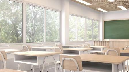 El diseño de iluminación en una escuela preparatoria se adapta a las necesidades específicas de cada espacio para garantizar un ambiente adecuado para su función En el aula, donde se requiere atención y concentración, se utilizan luces blancas de alta intensidad para asegurar una iluminación completa y uniforme. En el pasillo principal, se instalan spots con tonalidades neutrales para una visualización clara al transitar La cafetería cuenta con luces LED que iluminan todas las mesas para una correcta percepción de los alimentos. En la cocina, se emplean diferentes intensidades de luz fría, tanto empotradas como colgantes, dirigidas hacia las áreas de trabajo principales