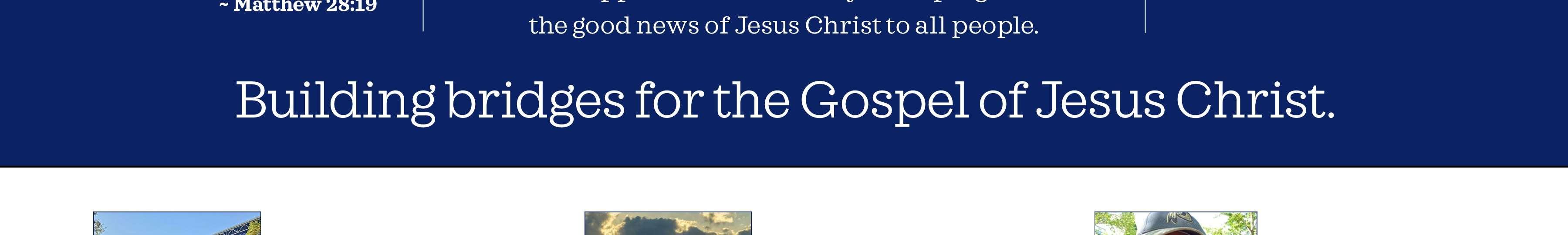 WeseektobuildbridgesfortheGospelofJesus betweenGodandpeople, betweenoneanotherincommunity, andbetweenourchurchandtheworld.