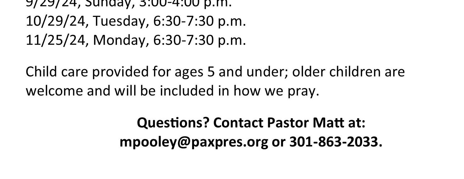 paxpres.com|301-863-2033|churchoffice@paxpres.org