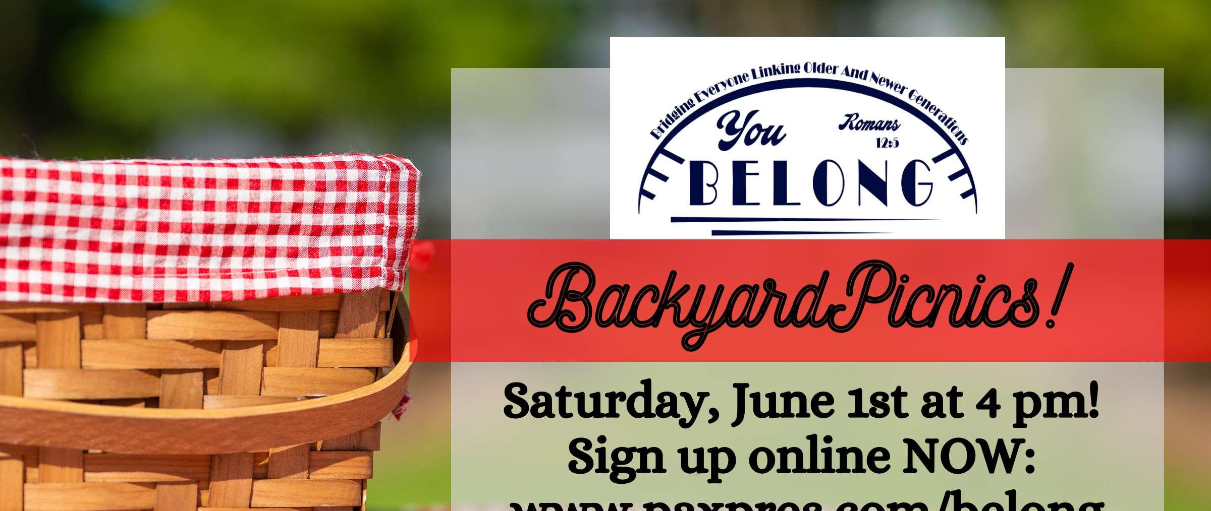 BELONGBackyardPicnics!Youarewarmly invitedtoparticipateinthisintergenerational eventtakingplaceonSaturday,June1st beginningat4:00p.m.Youandyourswillbe placedwithagroupofabout20peoplefrom PaxPresatoneofourcongregant’shomesfor fabulousfood,fun,andfellowship.Allyou needtodoisbringasidedishasrequestedby thepicnichostandgetreadytomeetsome newfolksfromourchurchorgettoknowyour brothersandsistersinChristinamore meaningfulway.Ifyou’rewillingtohost, pleaseletusknowontheregistrationform. Questions?ContactKarinStewartorCherie Crescini.YouBELONGatthisevent–don’tmiss it!Registerthroughthelinkprovidedinthe WeeklyeNewsorsignupintheNarthex!