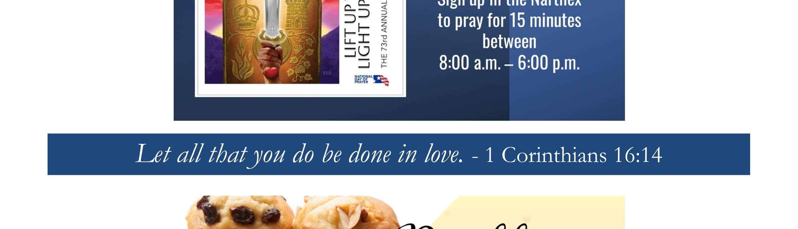 •At12:15p.m.intheFellowshipHall,wewillhavea SundaySchoolTeacherAppreciationLuncheon!Ifyou taughtSS4Kduringthe'23-'24schoolyear,thisisfor you!Checkyourinboxinthecomingweeksforan invitationandmoredetails.