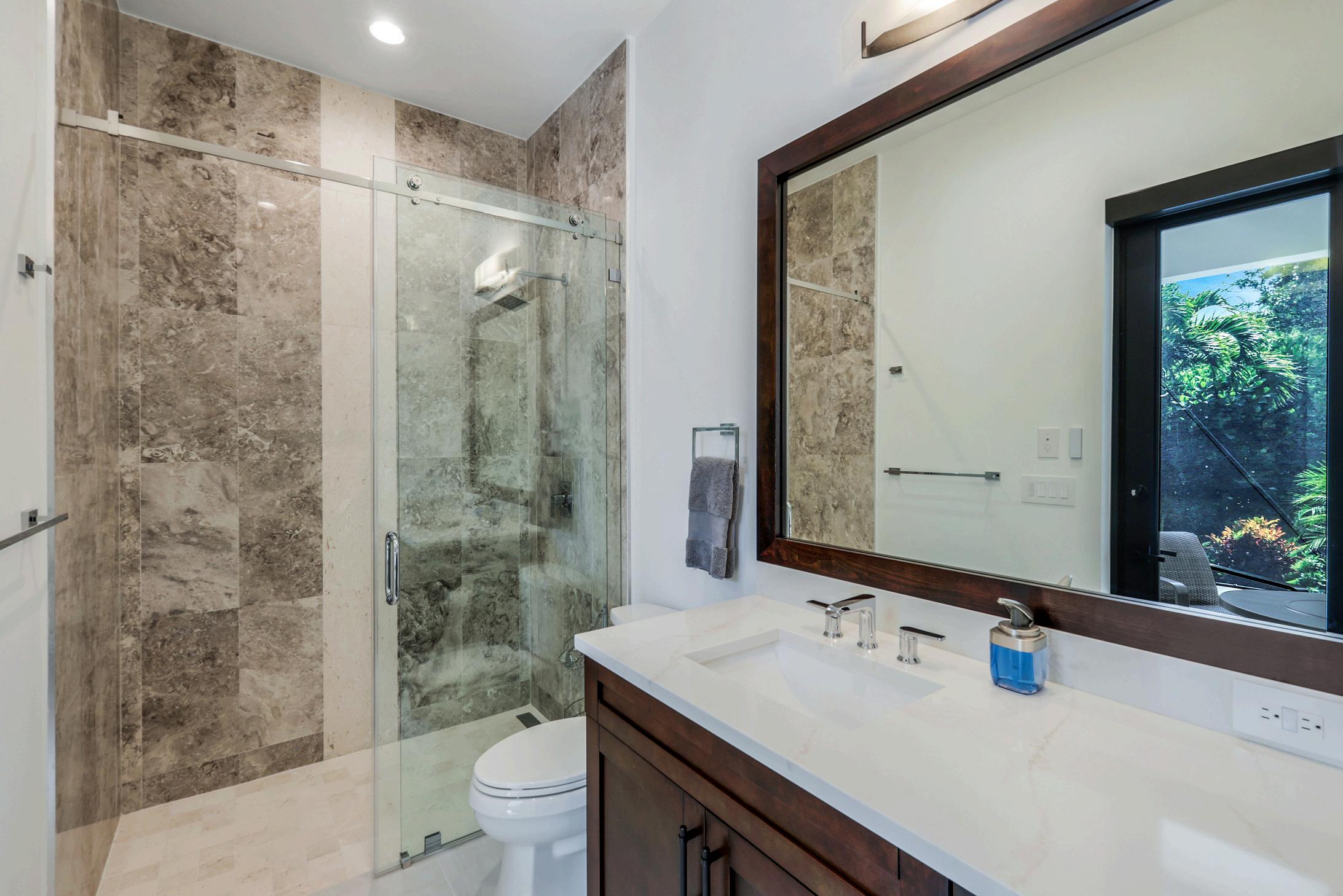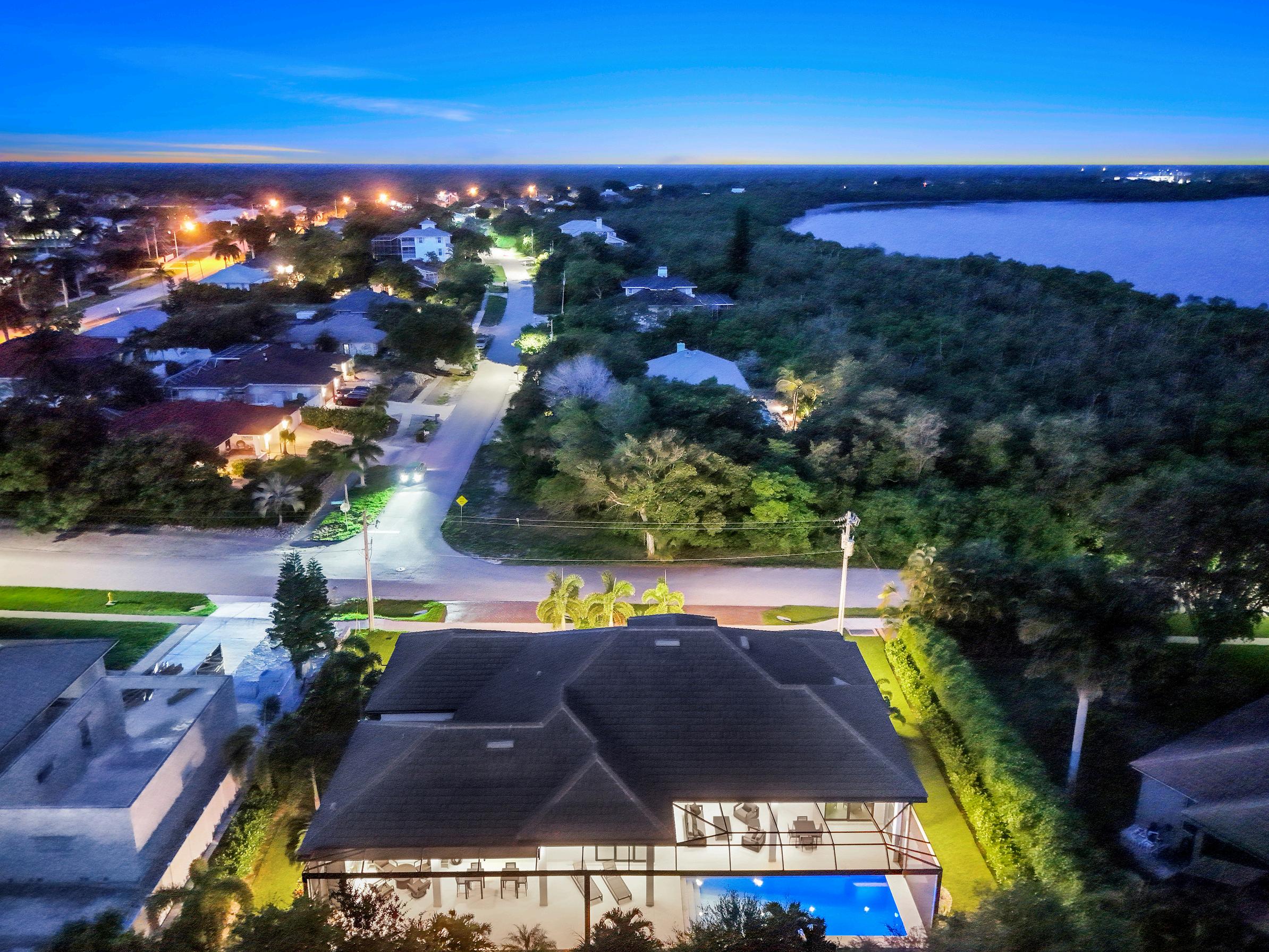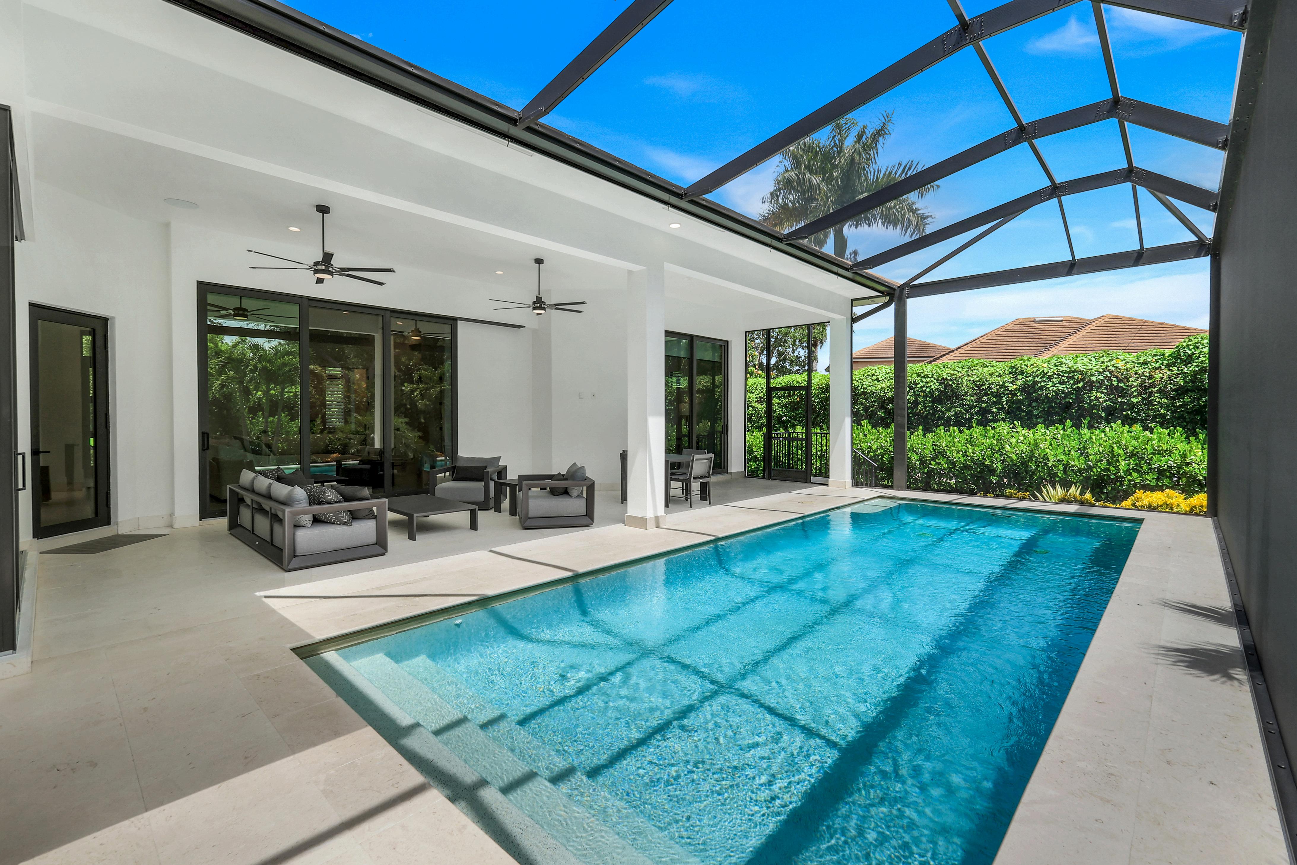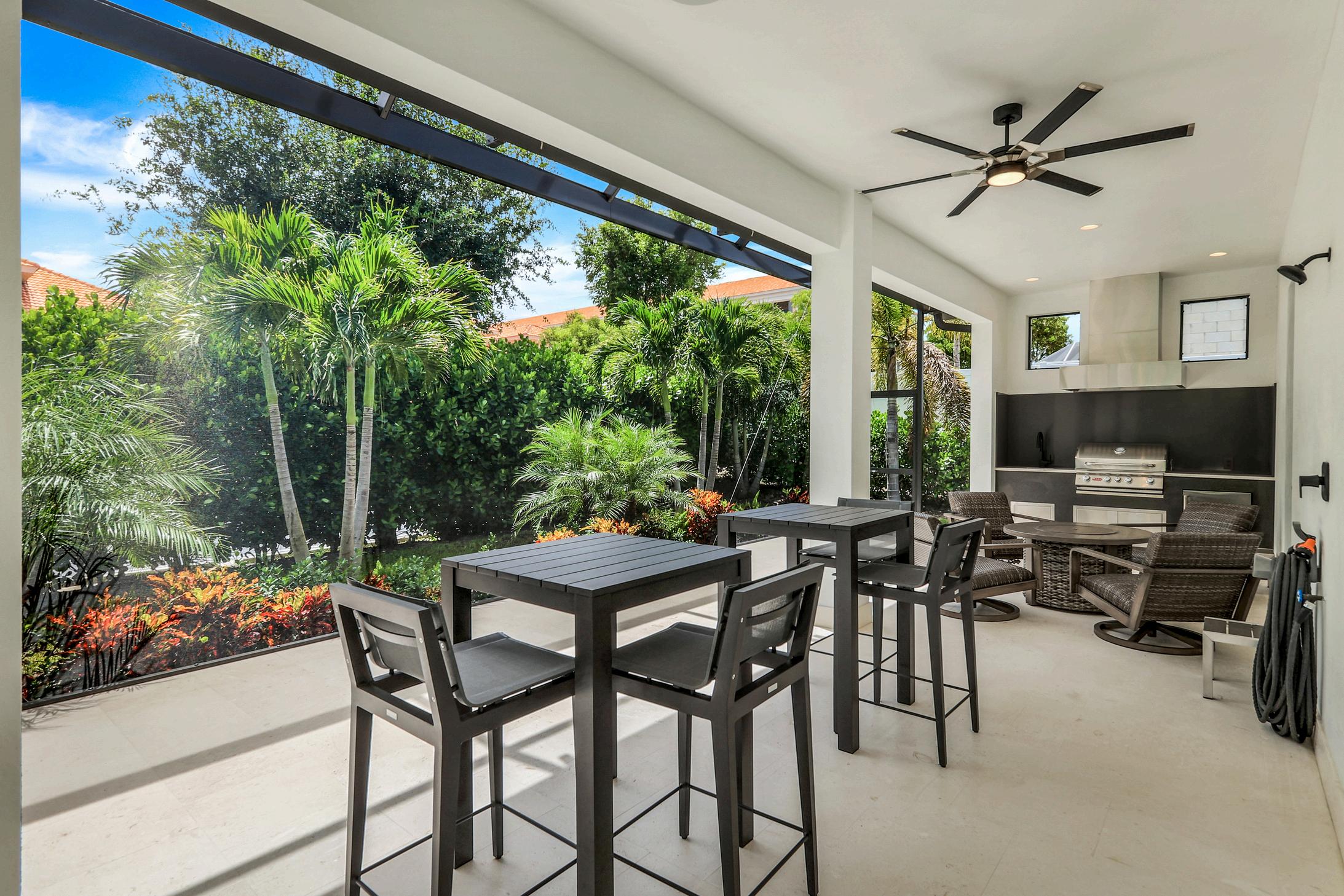 Thoughtful features include a whole house sound system, Porcelanatto engraved tile flooring, impact glass windows, automatic blinds with wall remotes, LED recessed lighting, and exceptional Hubbardton Forge lighting fixtures. The impeccable furniture complements the clean, sleek lines, accentuating the modernity and sophistication of the home.