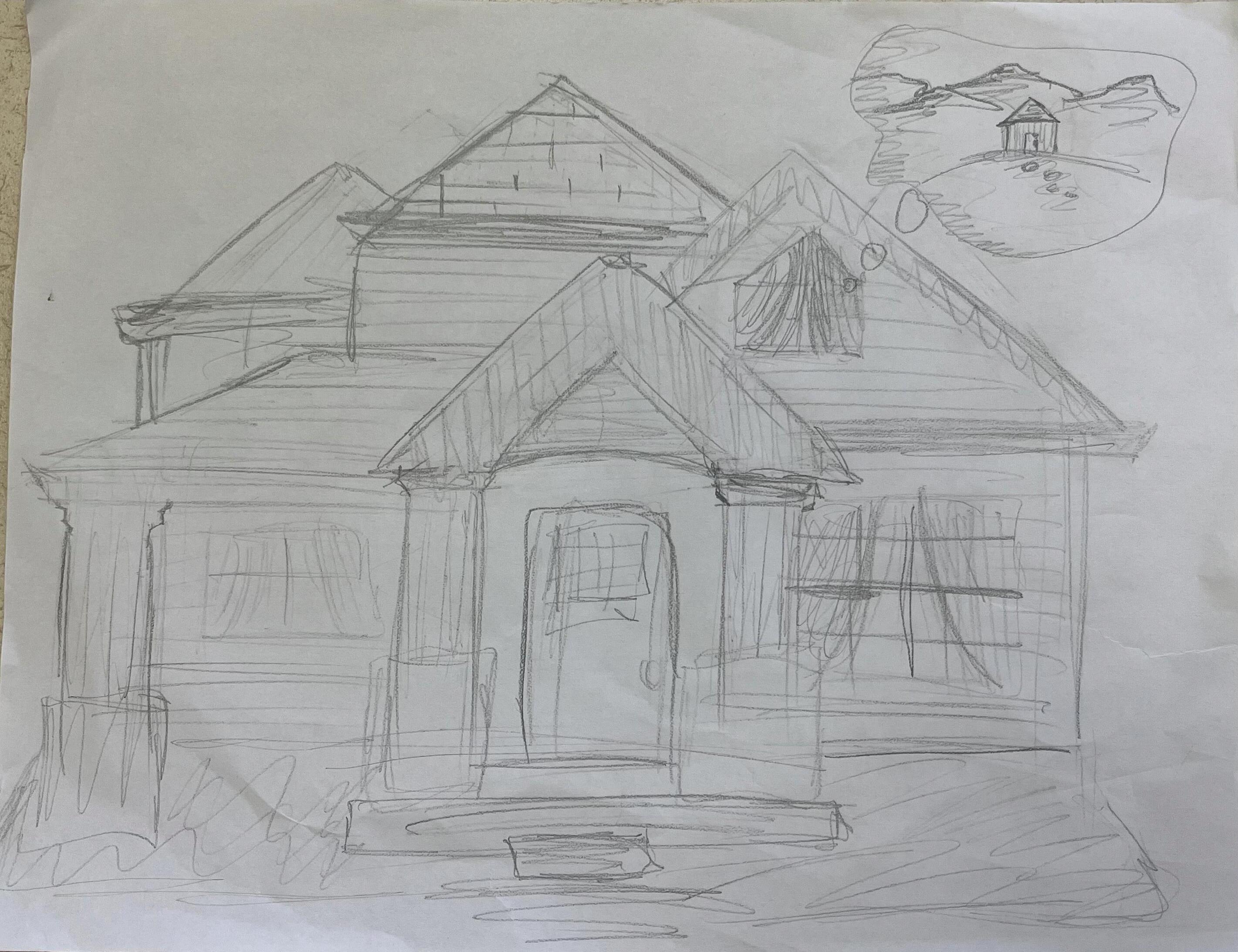 For Katelynn’s Vignette, I used different letters from a magazine to create one name, this represented when she talked about her different experiences in her life, coming together to create her as a person. I also used “Katie” on a small badge, similar to a name tag to communicate how she preferred the nickname to her real name. For Kilian’s vignette, I drew a large house, with a thought bubble coming out of the window to express Kilian’s difficulty getting used to his new house, as well as his longing for his old house.