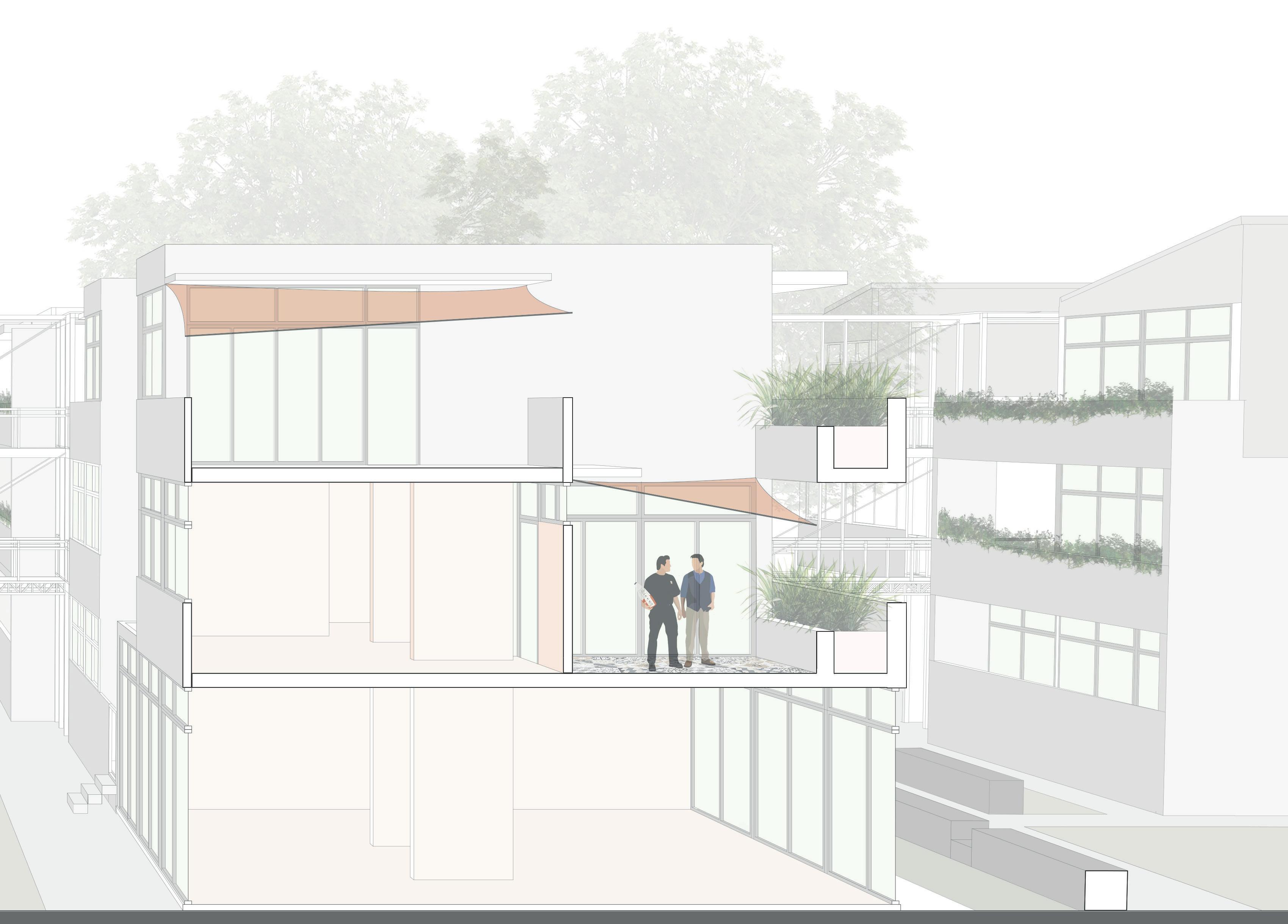 COMO RESULTADO DE LAS INDAGACIONES PREVIAS, SE PROYECTÓ CELULAS DE VIVIENDAS FLEXIBLES, MULTIFUNCIONALES Y EFICIENTES, PRETENDIENDO QUE LOS HABITANTES PUEDAN ENCONTRAR SU IDENTIDAD TANTO INDIVIDUAL COMO COLECTIVA.
