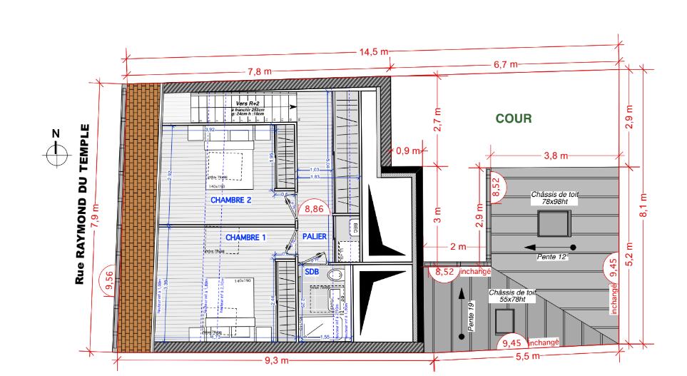 Plan R+2, après travaux/